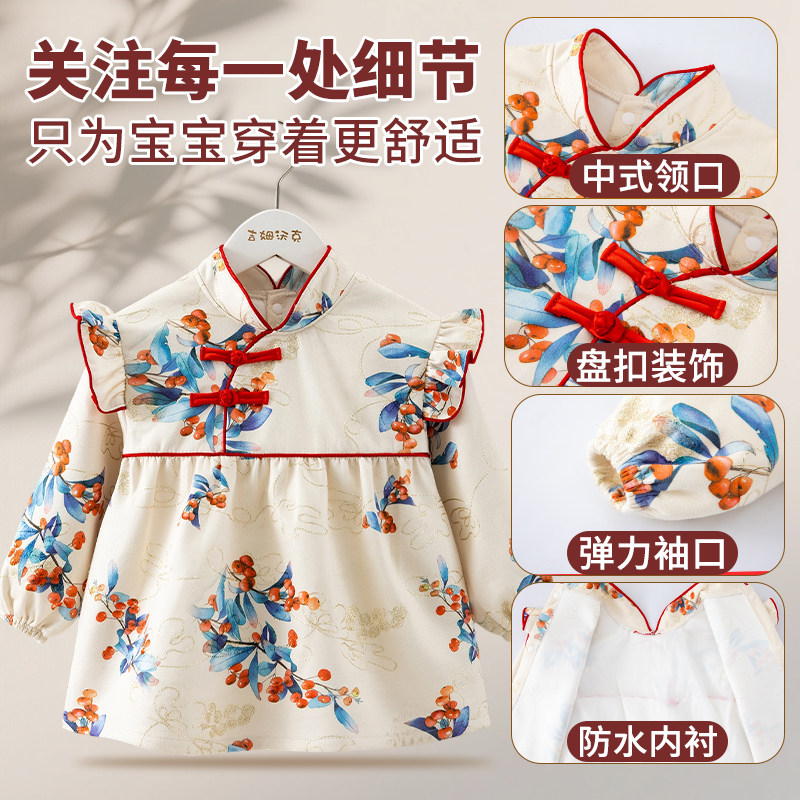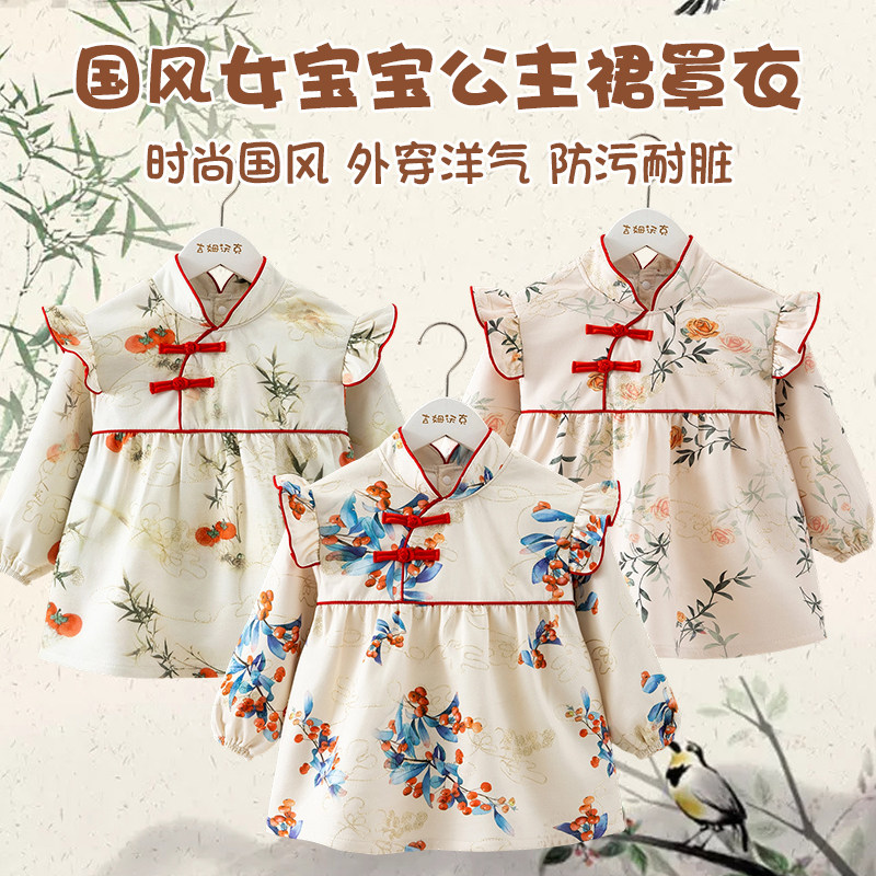 儿童罩衣女宝宝外穿秋冬2025防脏婴儿围裙反穿衣洋气公主中国风
