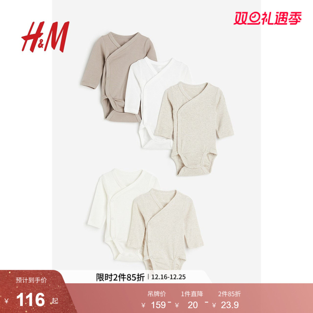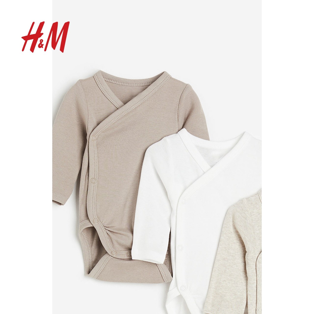 HM童装新生儿男婴女婴哈衣薄款棉布长袖裹身包屁衣5件装0814306