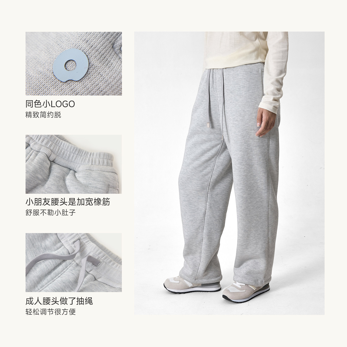 罗蒙儿童卡其色校园服裤子男童松紧西裤小学生加绒女童藏青运动裤
