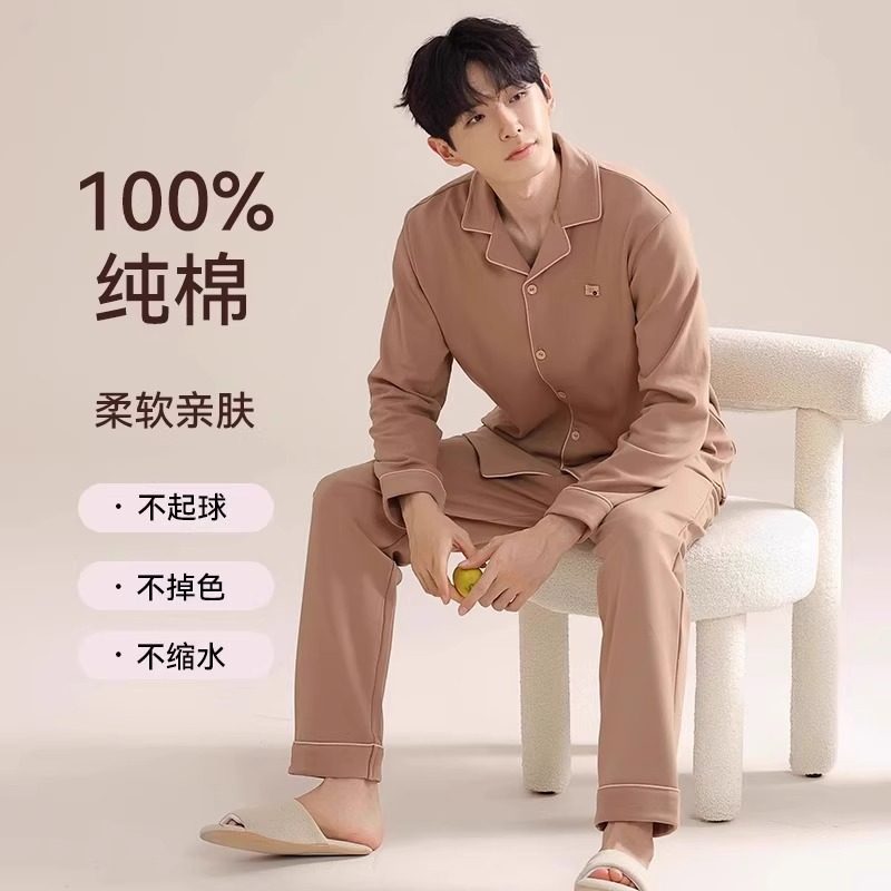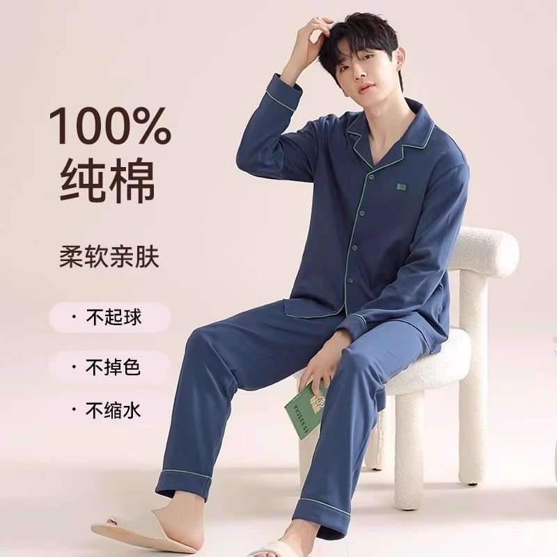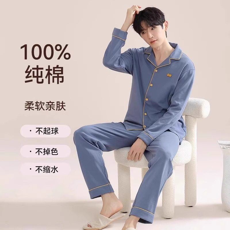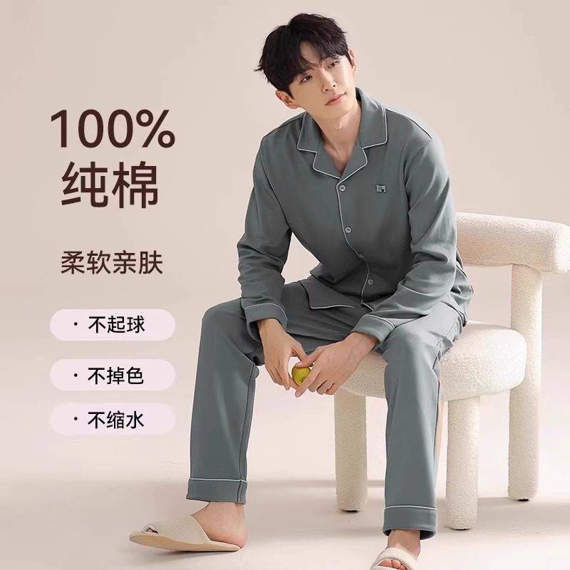 男士睡衣春秋款纯棉长袖套装2025新款简约大码男款青年开衫家居服