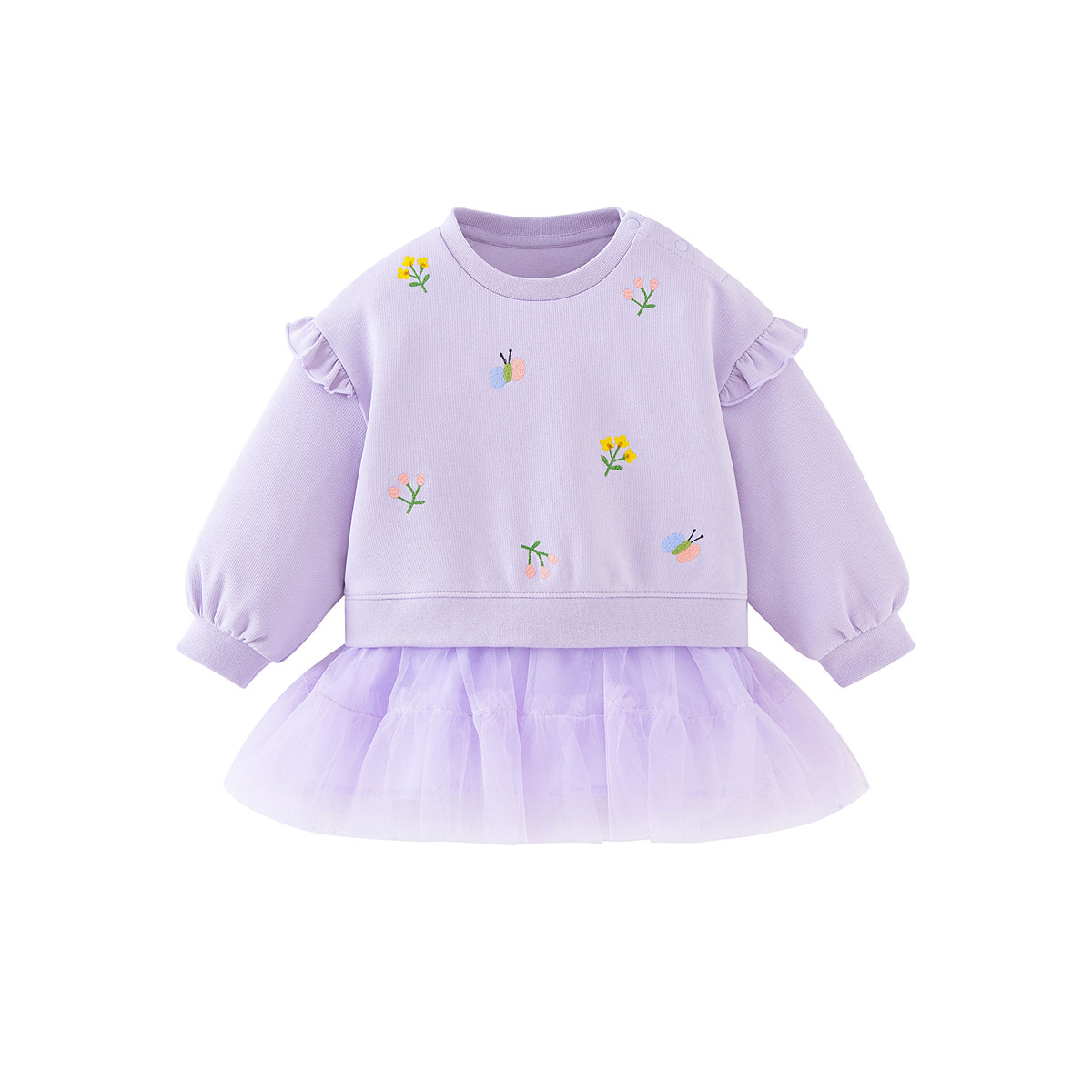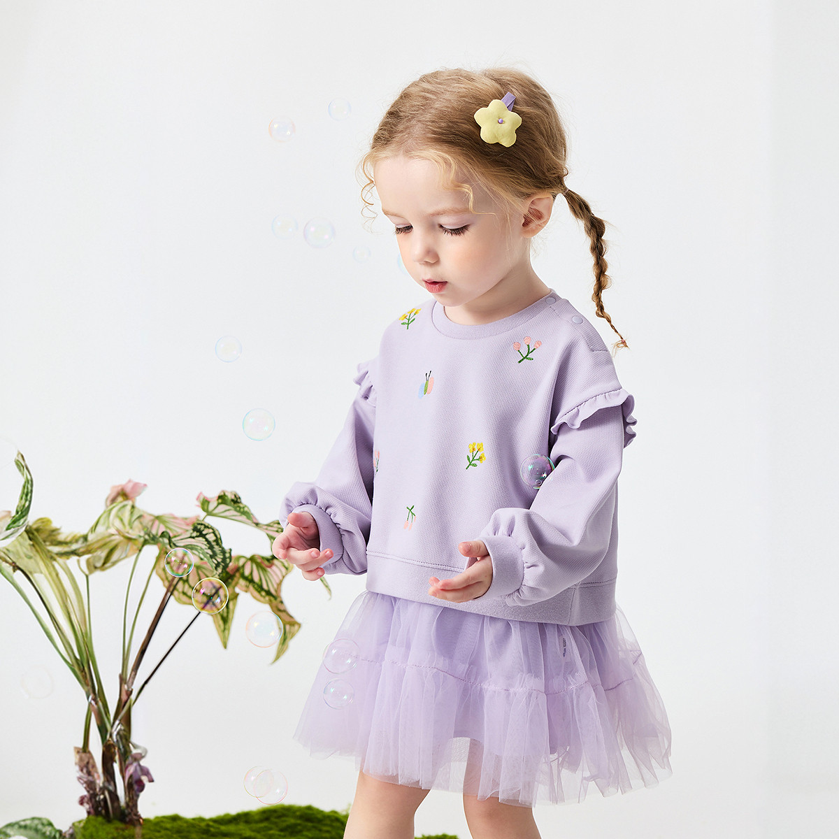 迷你巴拉巴拉女童宝宝裙子儿童卫衣拼网纱甜美连衣裙2026春新品