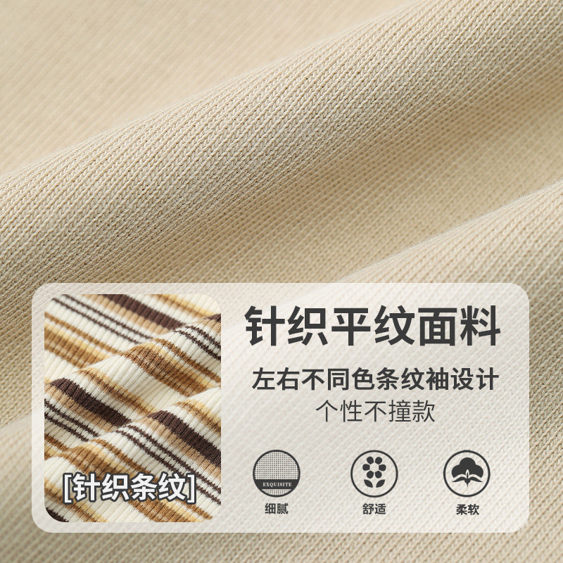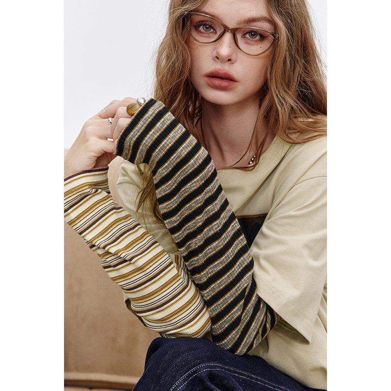 妖精的口袋假两件条纹拼接印花长袖t恤女2025秋季新款设计感上衣