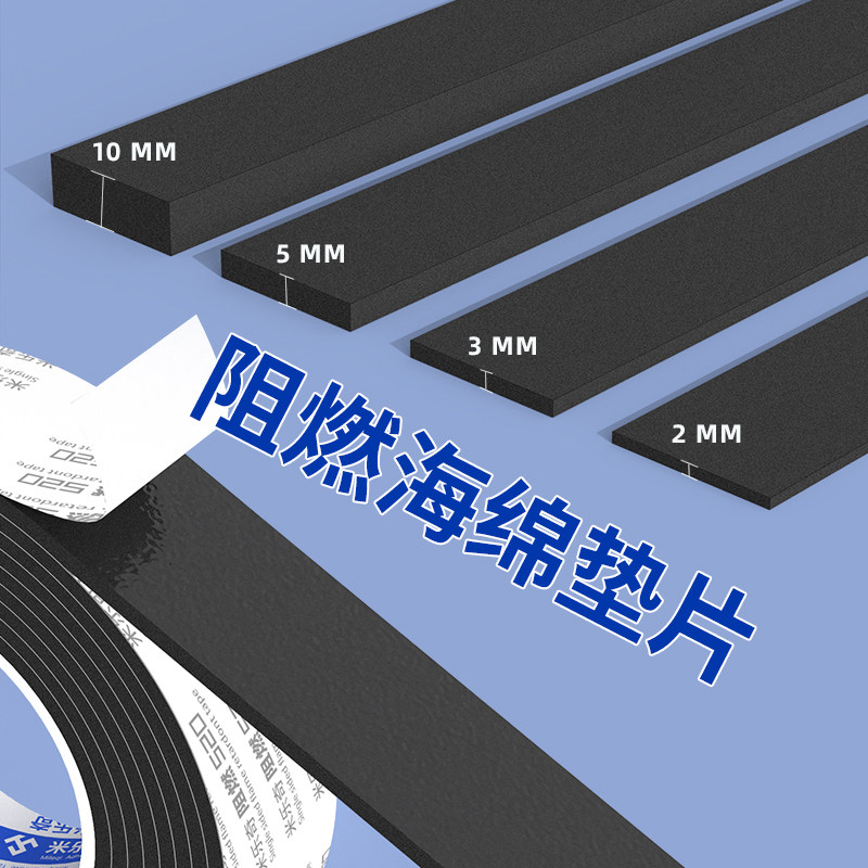 eva泡棉单面胶阻燃海绵条锂电池防震垫缓冲减震棉加厚泡沫密封条