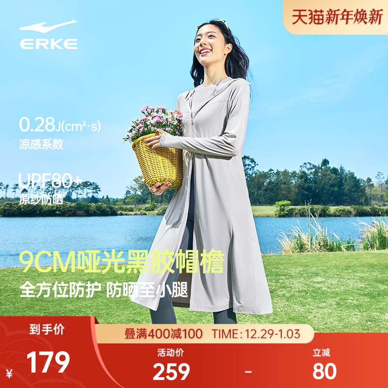 泡泡冰3丨鸿星尔克黑胶防晒衣女款2025夏季女士中长款冰丝皮肤衣