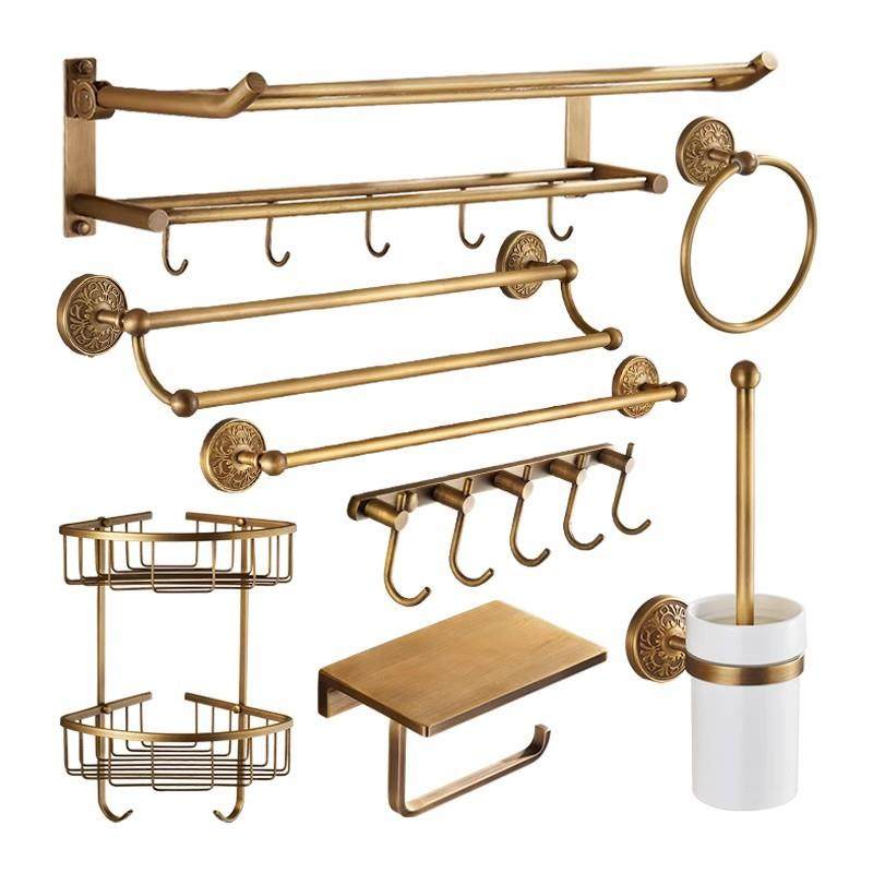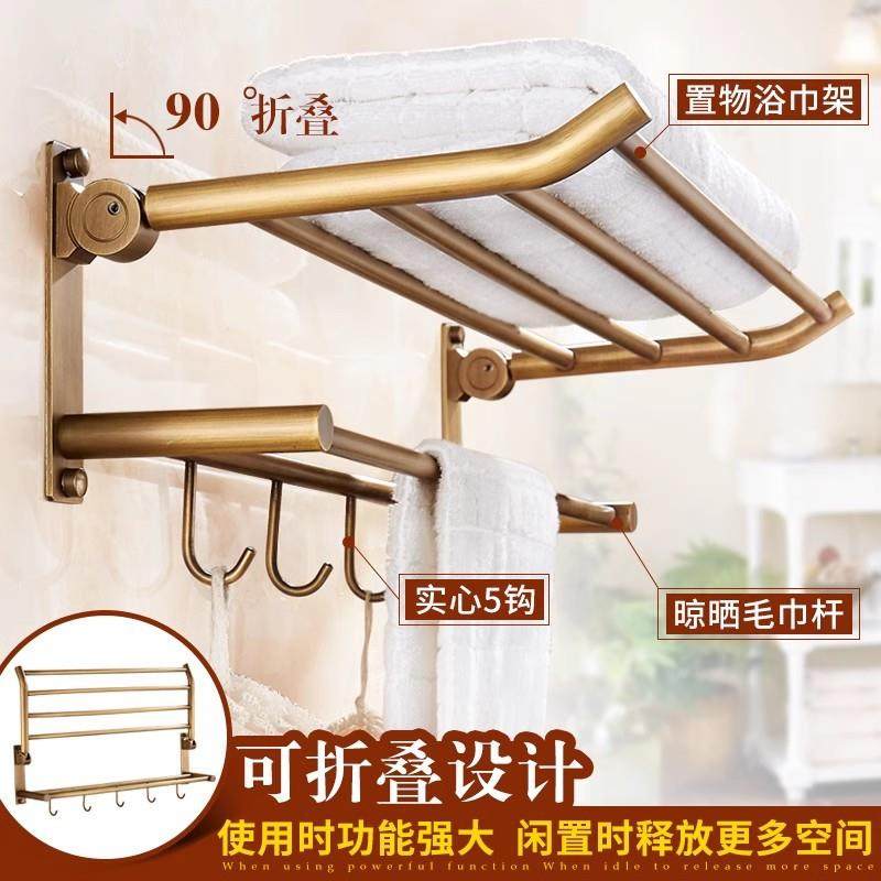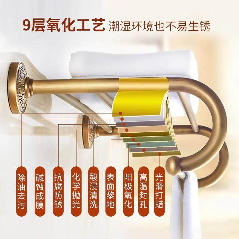 高端复古毛巾架全铜免打孔五金挂件套装浴巾架浴室置
