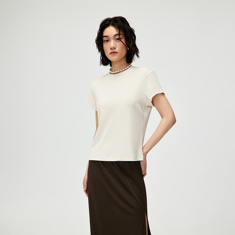 凉感T森马短袖T恤女短款修身正肩收腰2025夏新款上衣百搭白色体恤