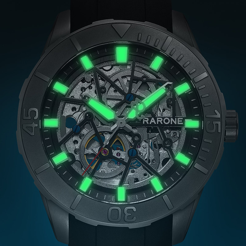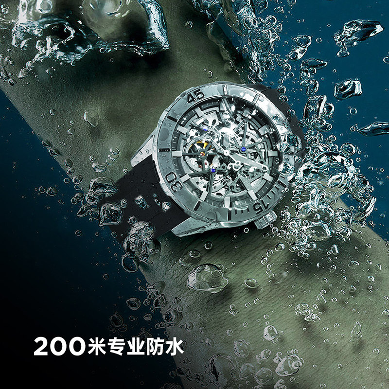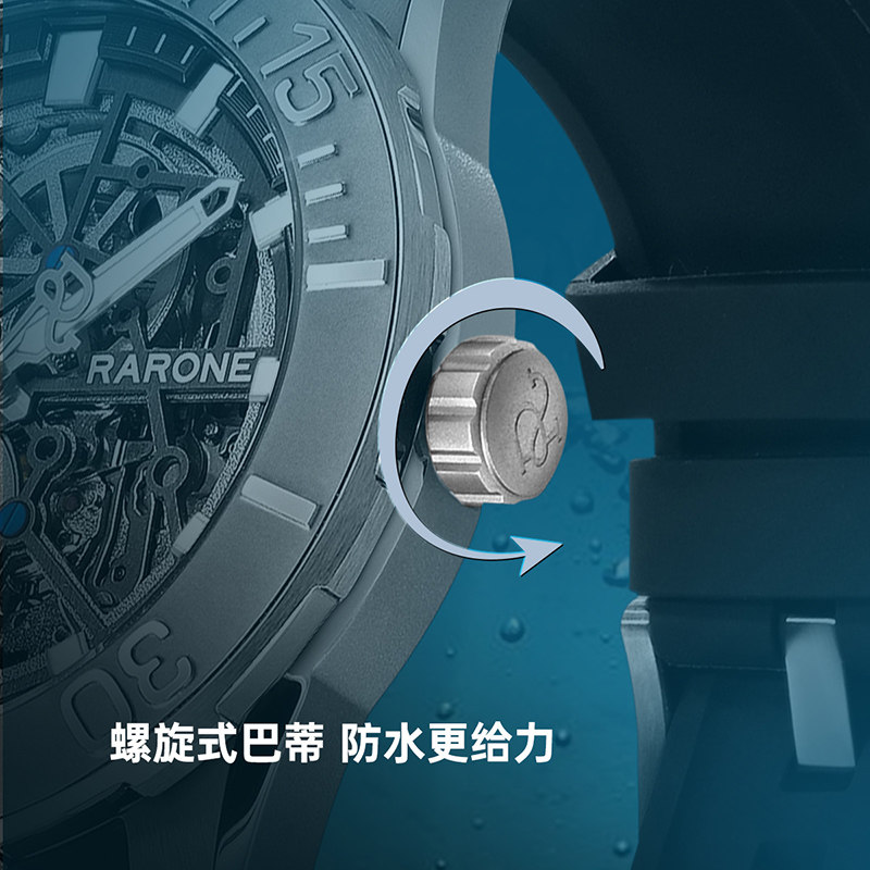 【新年礼物】Rarone雷诺双子星手表男款潜水镂空自动机械腕表名牌