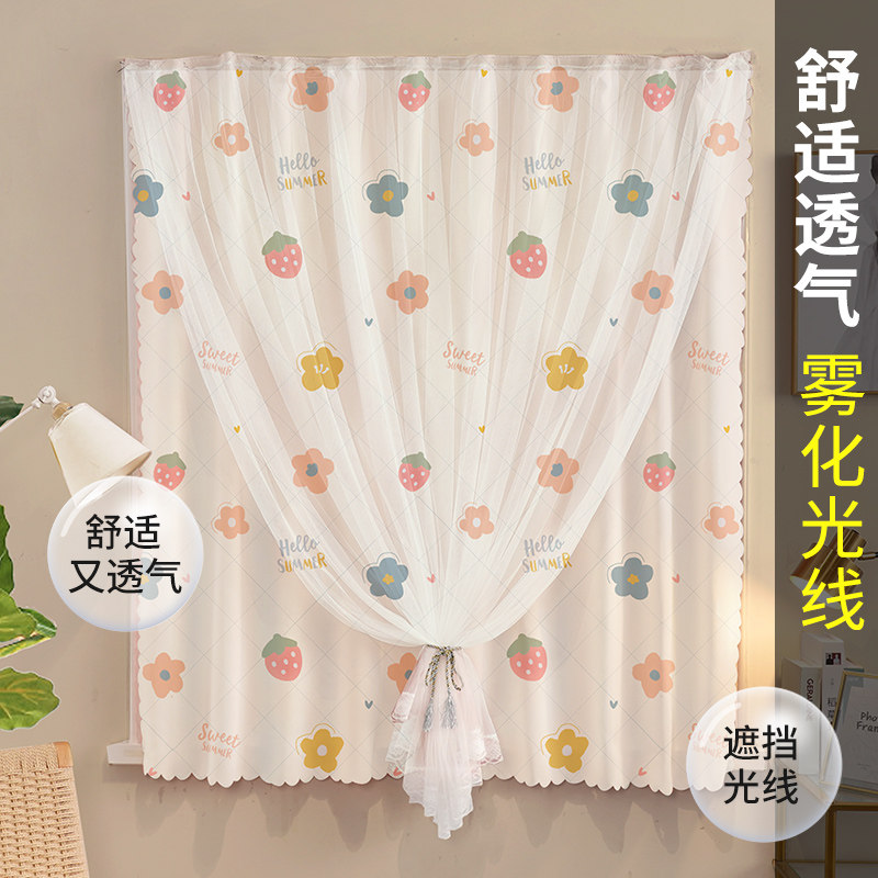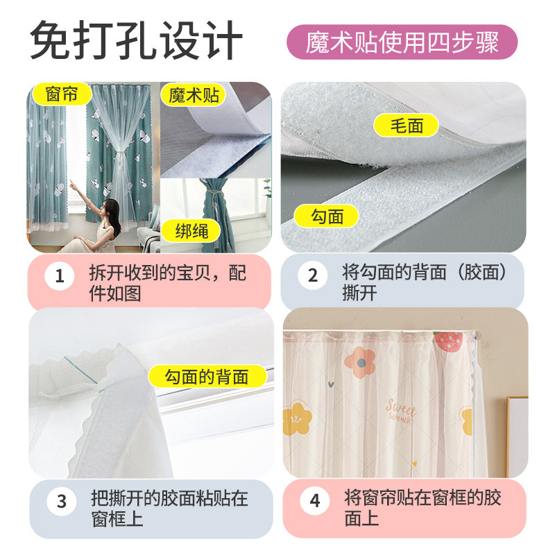 卧室窗户免打孔魔术贴窗帘宿舍阳台纱帘门帘柜子遮挡布四季用2026