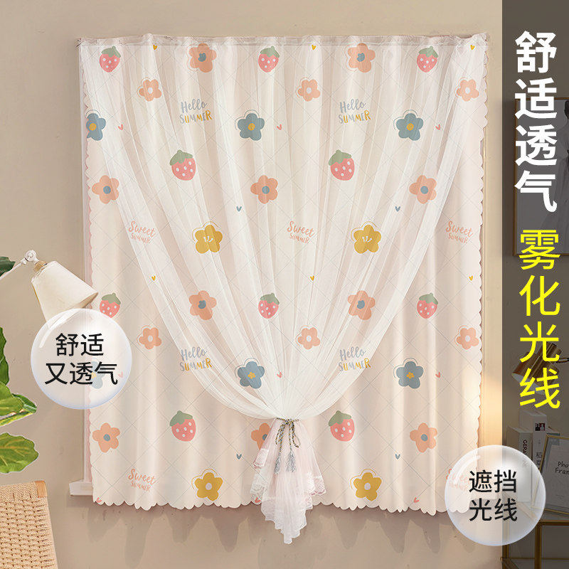 免打孔窗帘魔术贴简约遮挡帘客厅阳台小窗户出租房门帘防风隔热帘