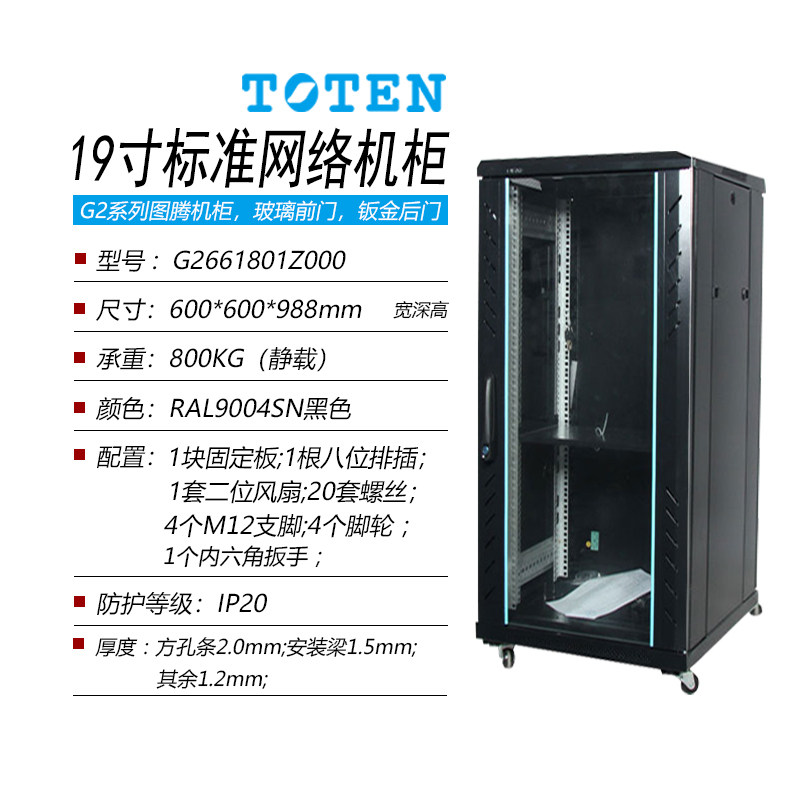 图腾18U机柜G26618落地款1米高/600深标准19英寸网络服务器交换机监控弱电设备现货原装正品TOTEN含13%增票