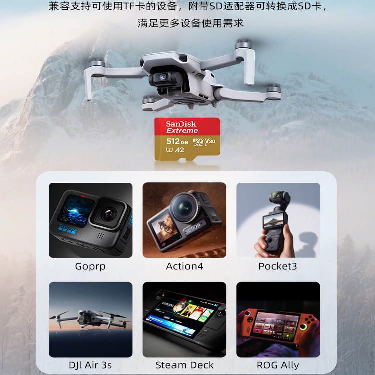 Sandisk/闪迪适用大疆无人机内存卡256G大疆Mini5pro/4/3无人机tf卡闪存卡pocket3/action6/5pro相机内存卡