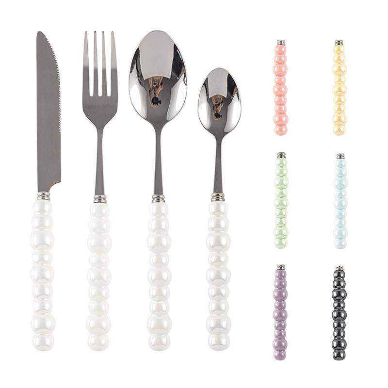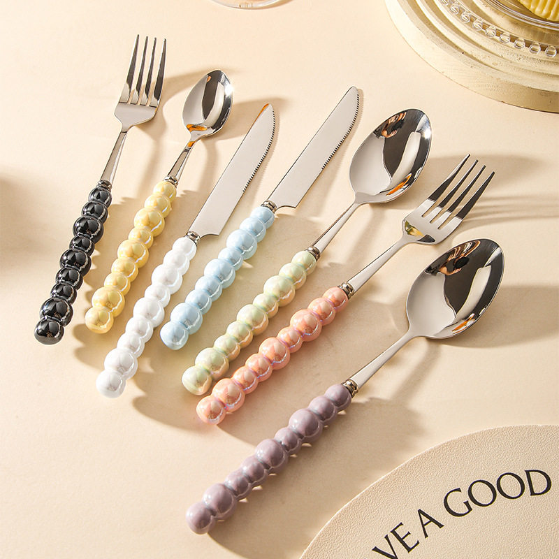 陶瓷珍珠手柄刀叉勺 小仙女高颜值吃饭汤勺调羹西餐牛排刀伴手礼