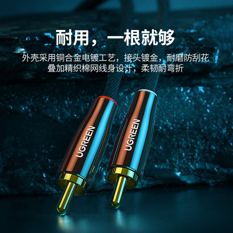 绿联音频线一分二音响连接线3.5mm转双莲花rca转换插头输出台式主机笔记本电脑手机功放低音炮aux音箱转接线