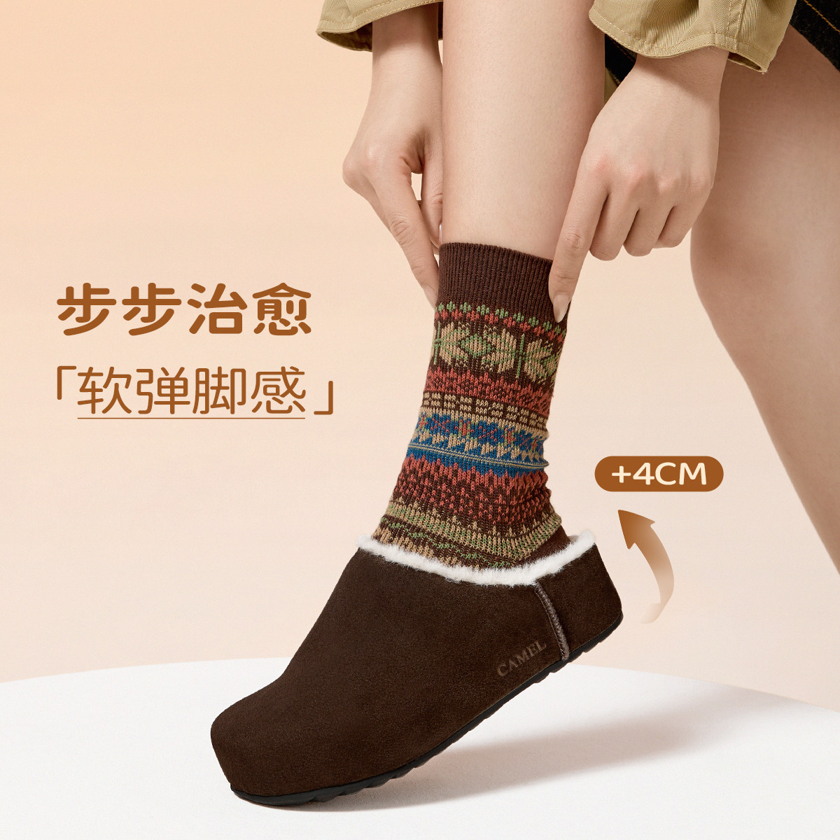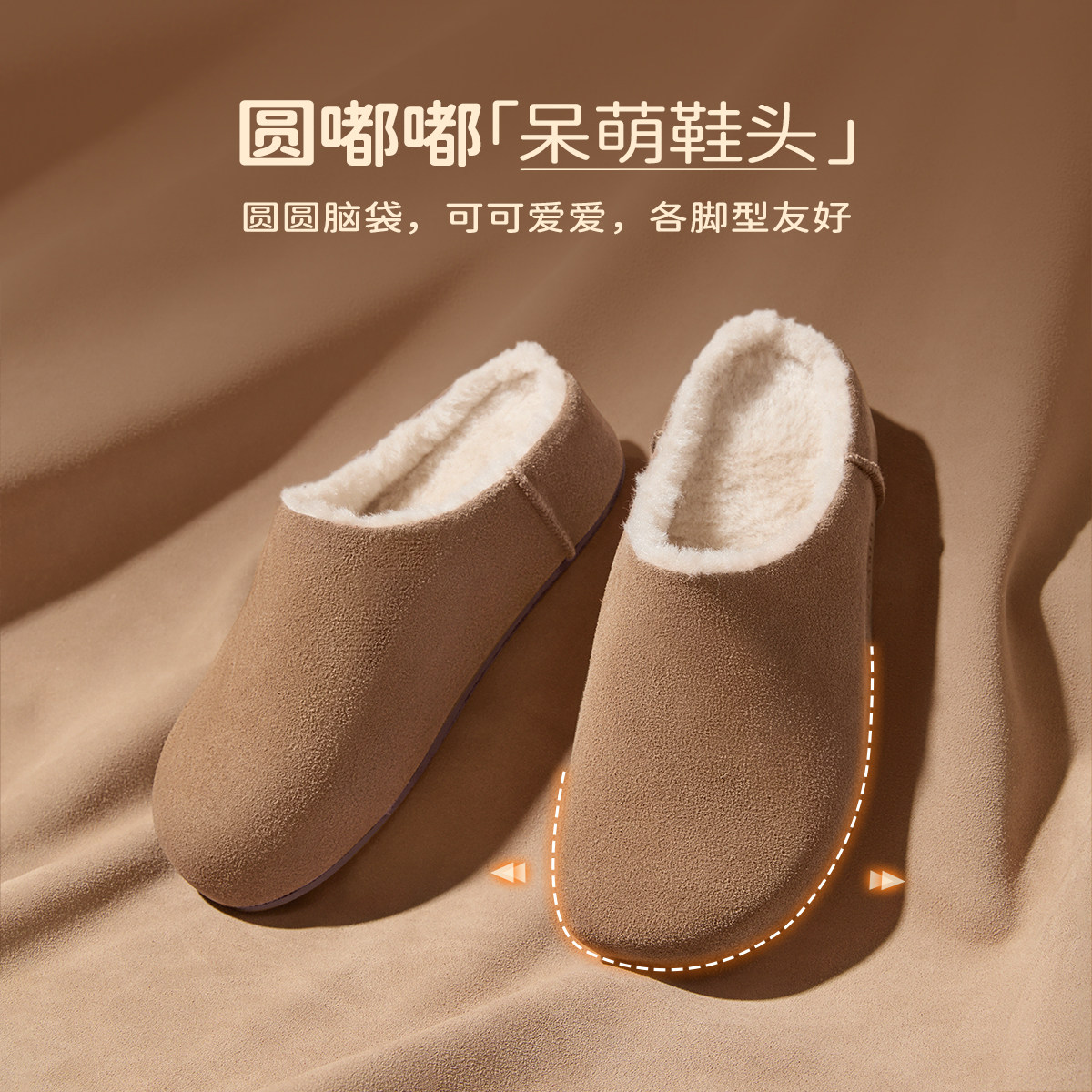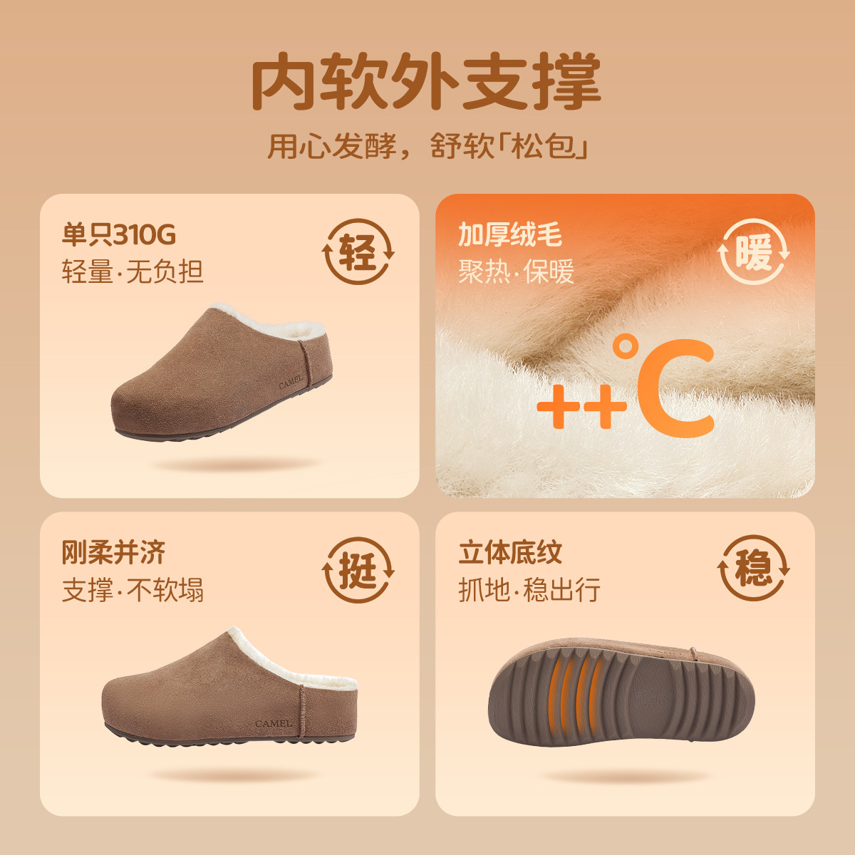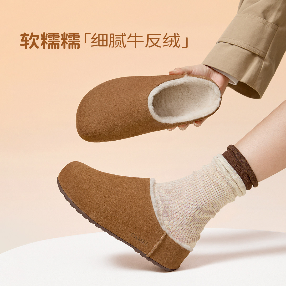 骆驼女鞋2025冬季新款包头加绒毛毛鞋厚底勃肯鞋穆勒半拖鞋雪地靴