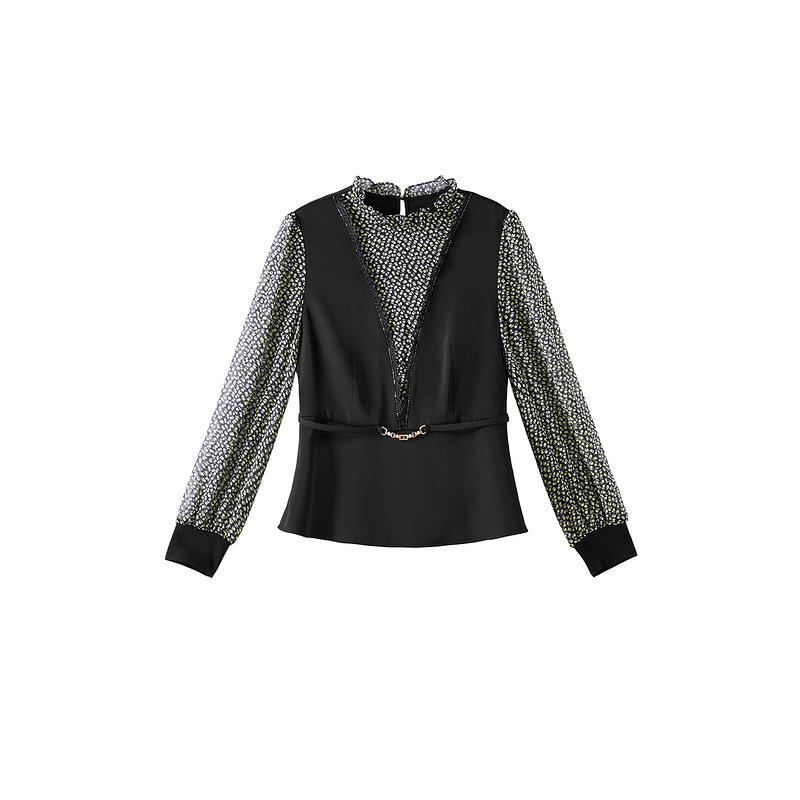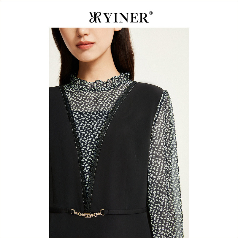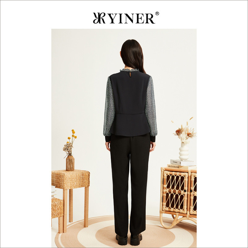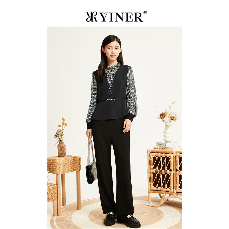 YINER音儿专选女装秋木耳边假两件上衣设计感衬衫
