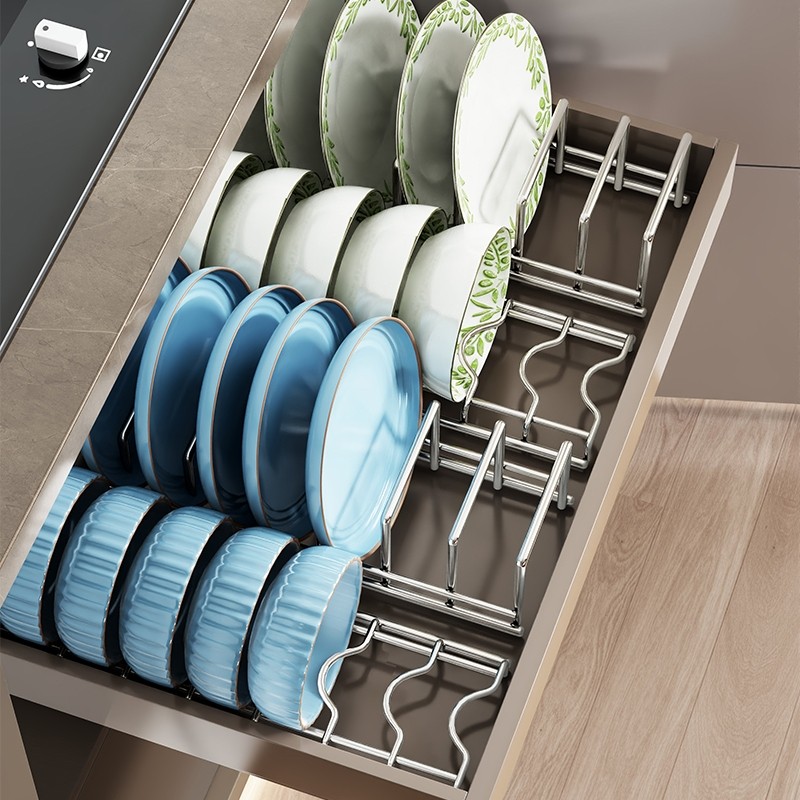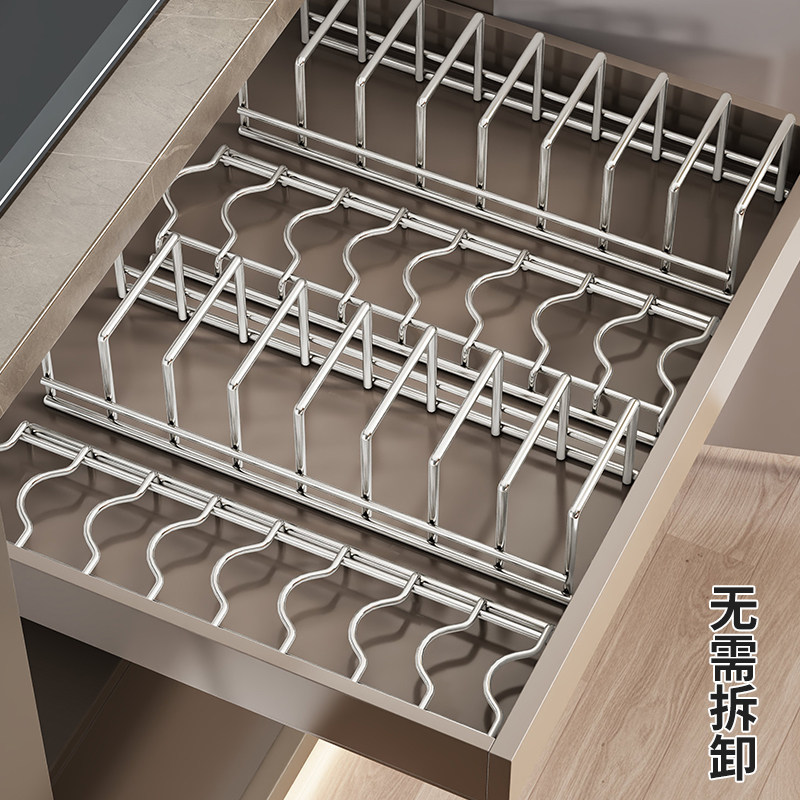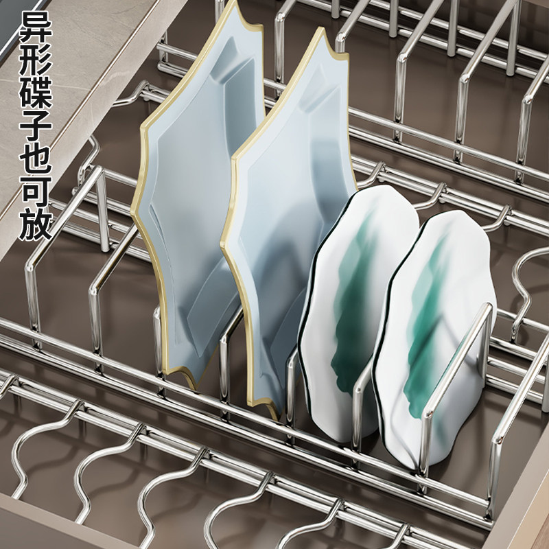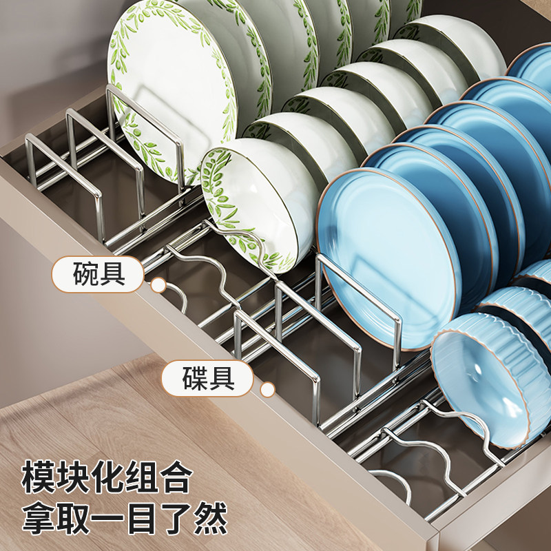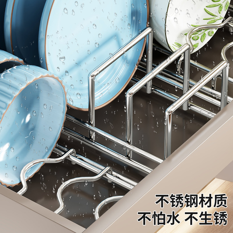 家用厨房抽屉式置物架拉篮碗碟沥水架橱柜餐具收纳架子碗筷碟子