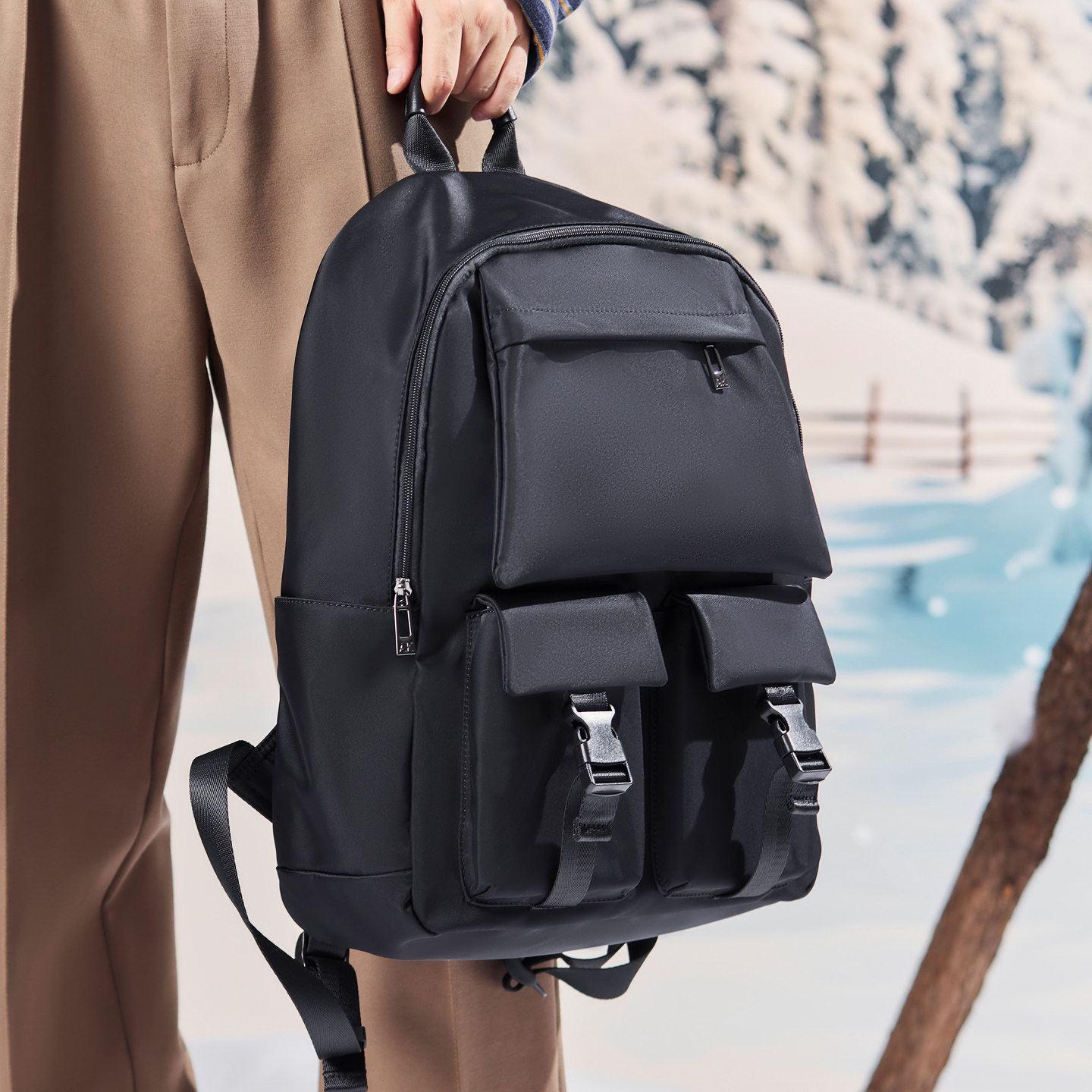 奥康男包黑色双肩包大容量多口袋通勤背包大学生简约轻便时尚休闲