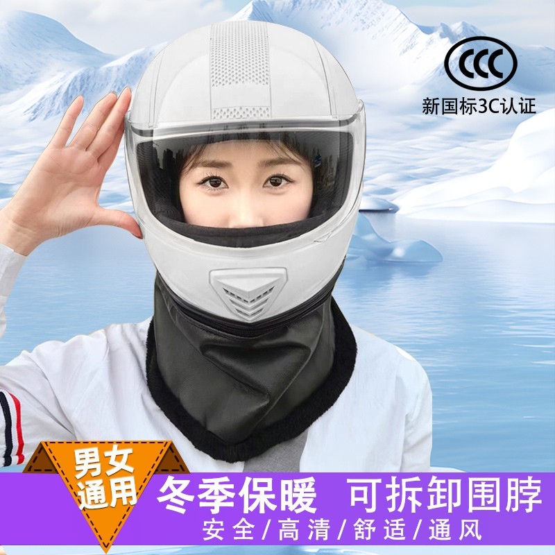 3C认证电动摩托车头盔男女四季通用盔秋冬保暖防雨防雾全盔安全帽