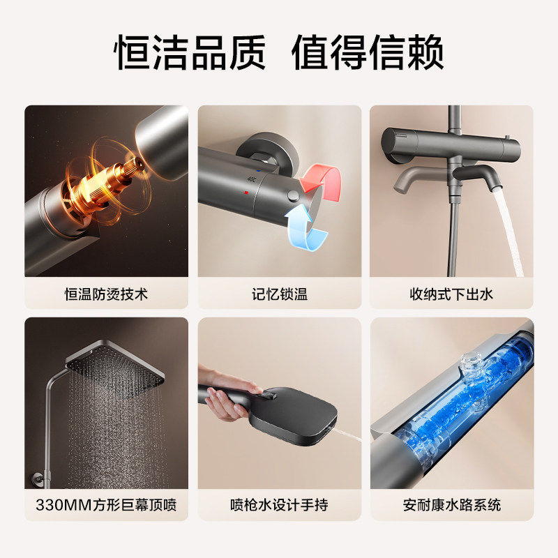 恒洁卫浴恒温花洒套装淋浴器龙头家用大平台置物易洁957-333