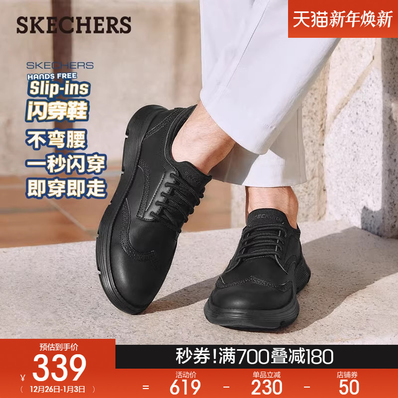 斯凯奇闪穿鞋|秋冬男子一脚蹬软底商务正装皮鞋结婚新郎鞋德比鞋