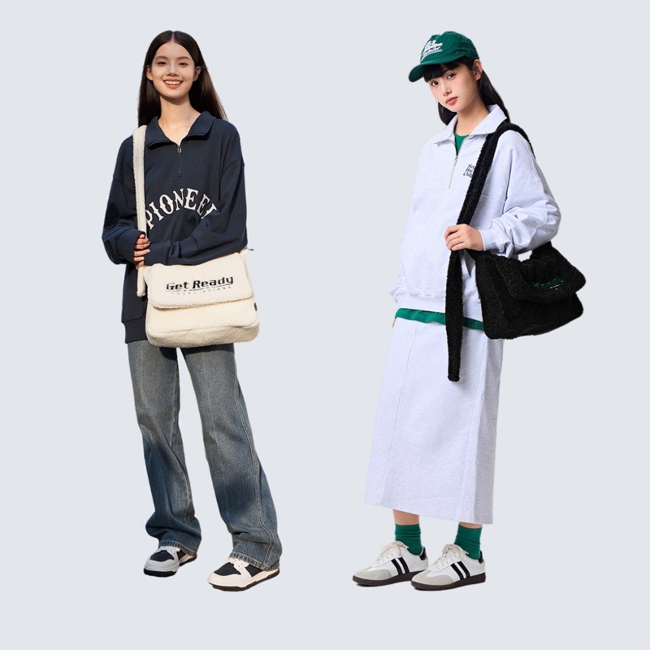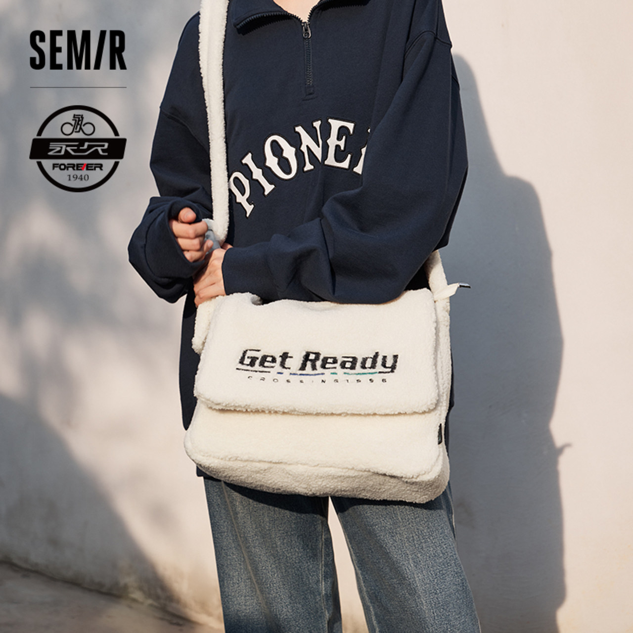 森马包包永久联名邮差包女2023新款仿羊羔绒舒适质感单肩包斜挎包