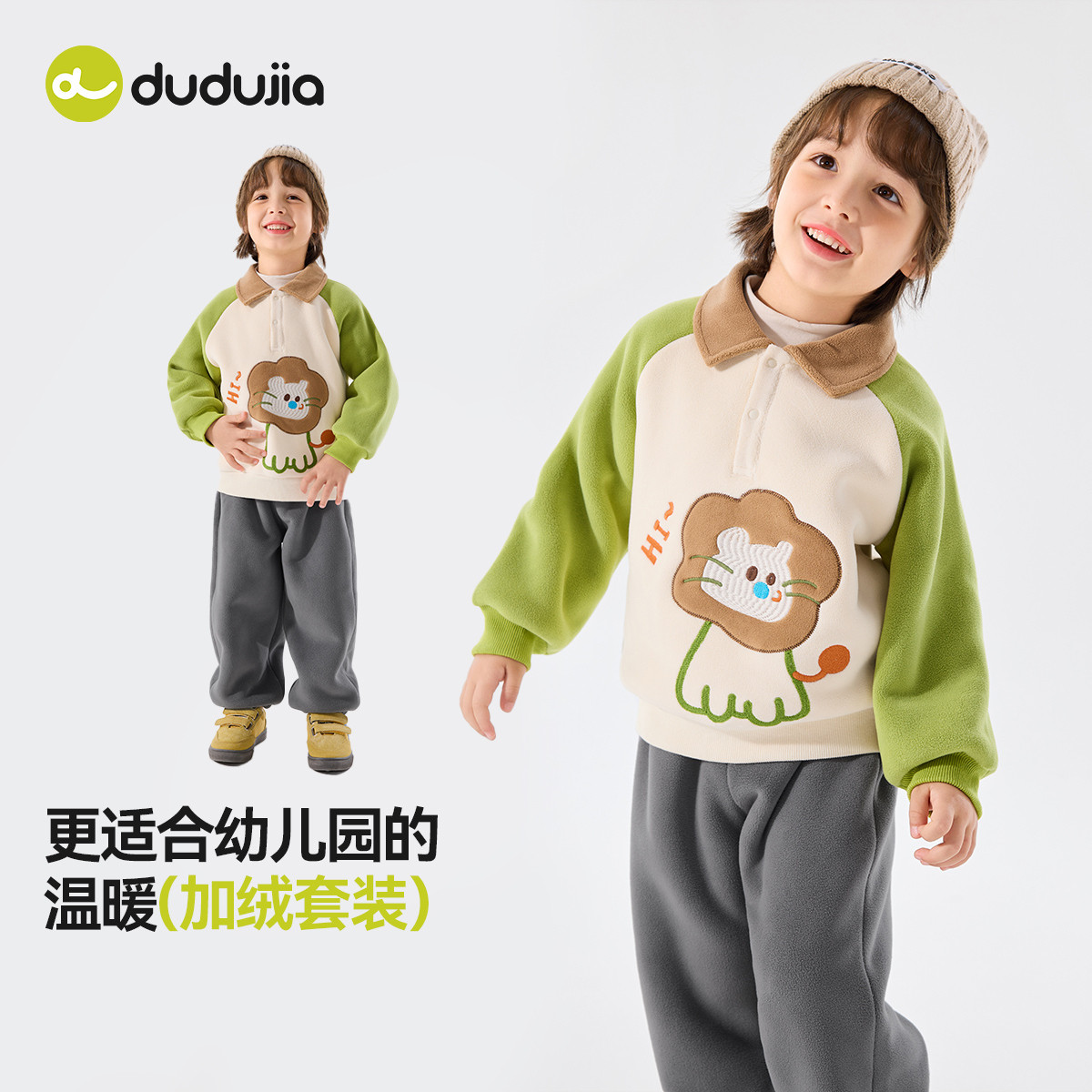 嘟嘟家男童套装冬季儿童卫衣裤子女童加绒上衣长裤宝宝小童装衣服
