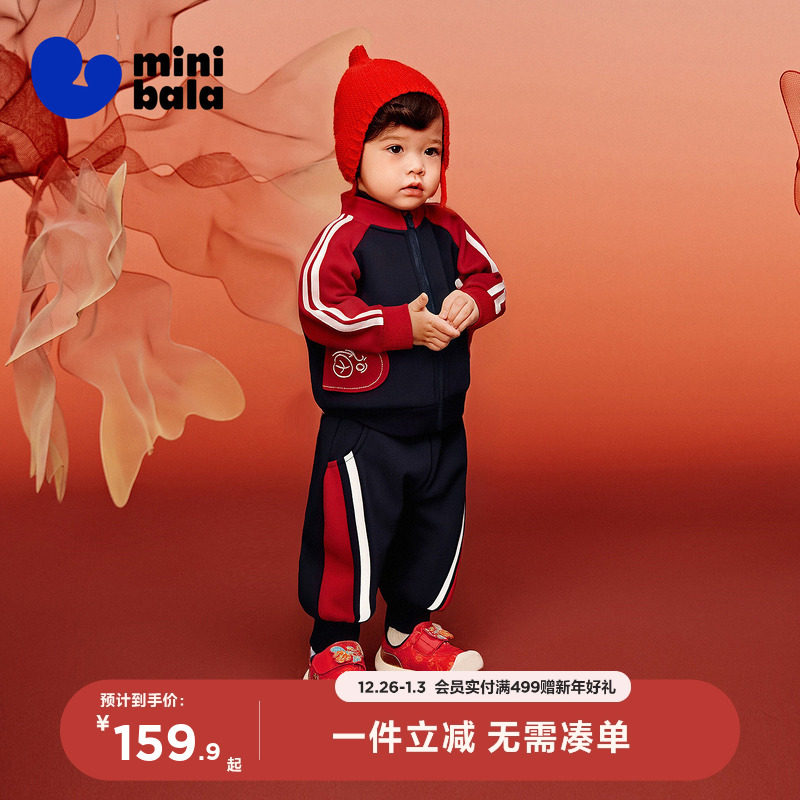 【内里加绒】迷你巴拉巴拉男女童儿童保暖长袖卫衣长裤套装冬新款