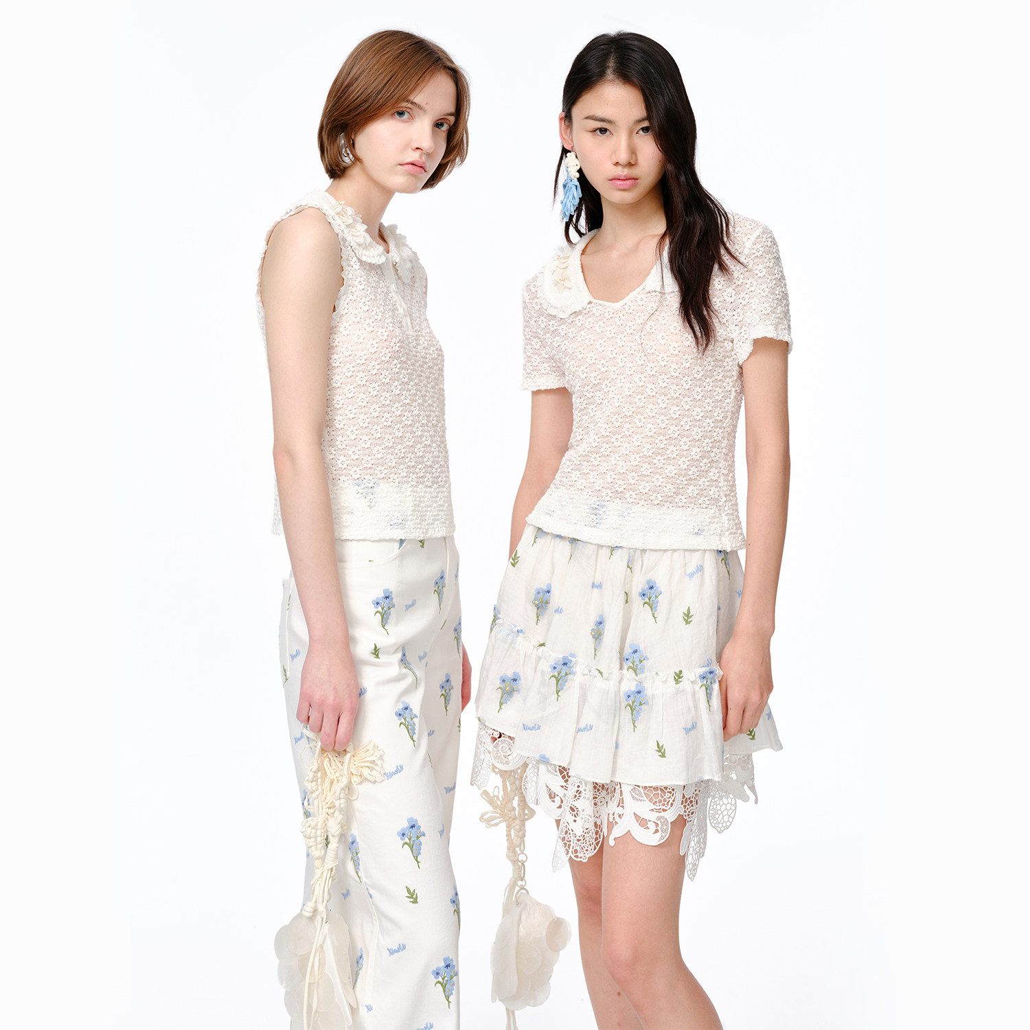 XIAOLI筱李 25春夏设计师品牌休闲宽松白色蓝碎花短裤