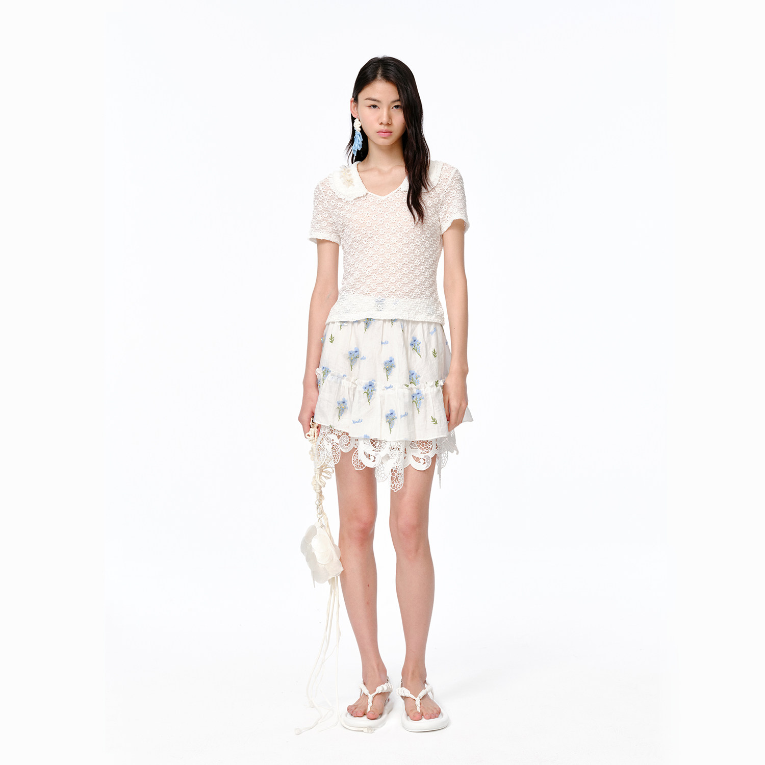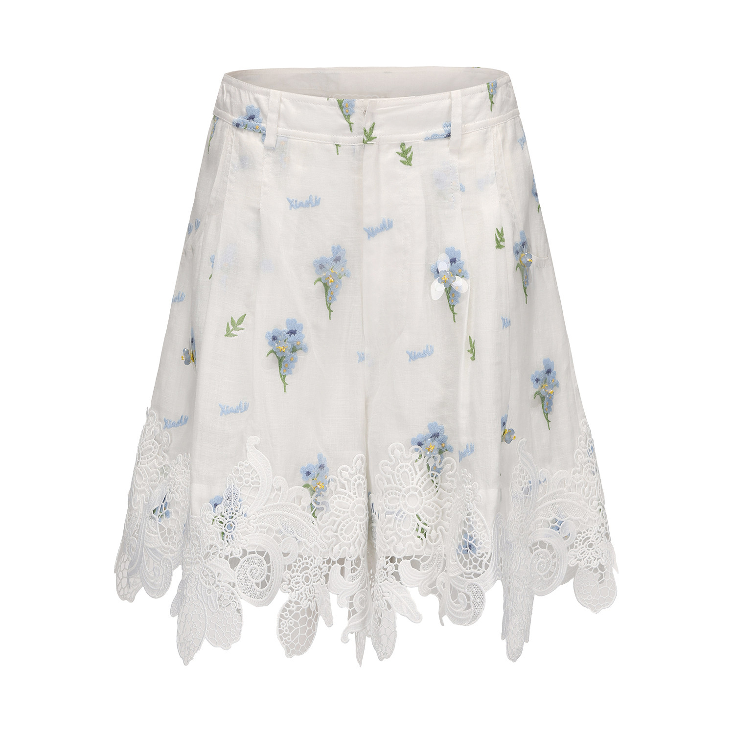 设计师品牌休闲宽松白色蓝碎花短裤蕾丝花边