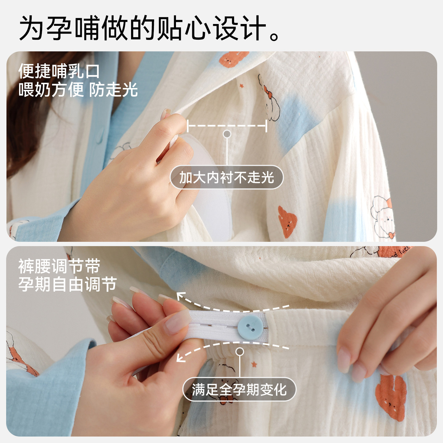 十月结晶兜兜鸭纯全棉吸汗月子服哺乳睡衣7A抗菌12月家居服女冬季