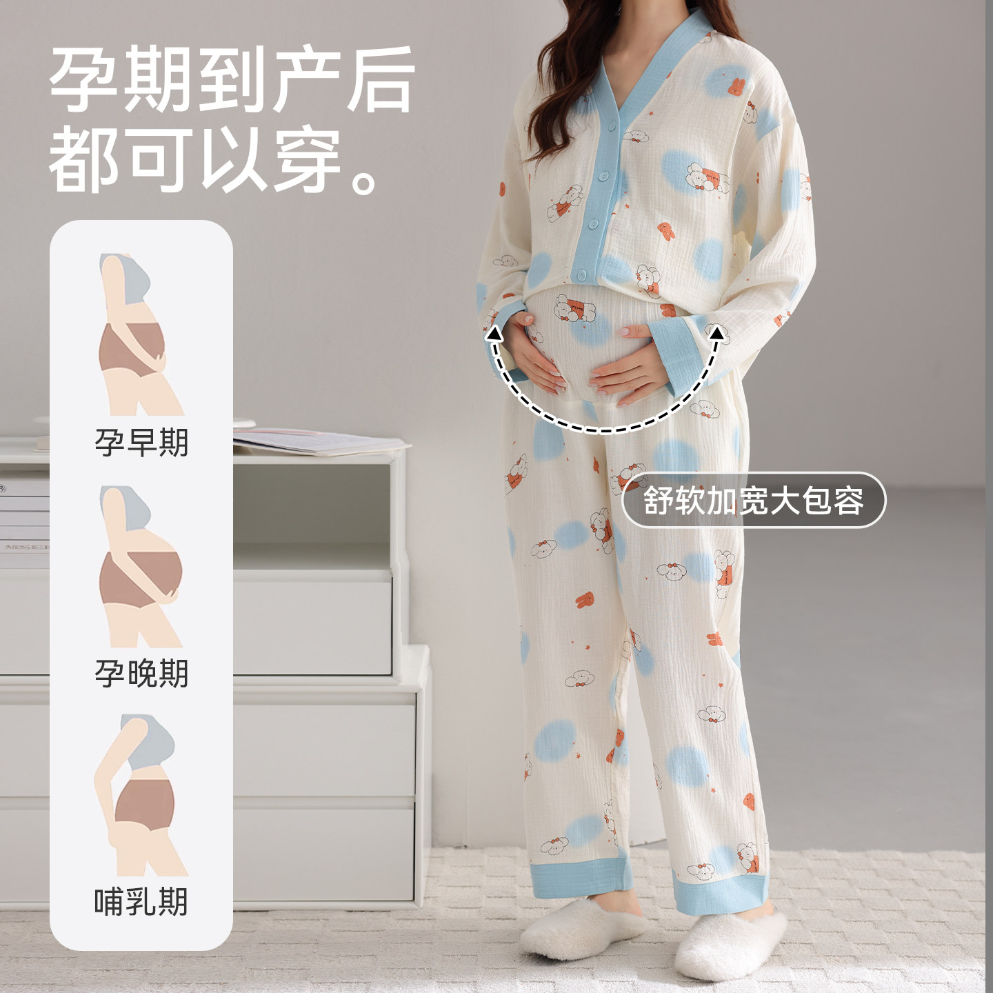 空气棉月子服秋冬季纯棉产后12月份全棉吸汗喂奶产妇哺乳孕妇睡衣