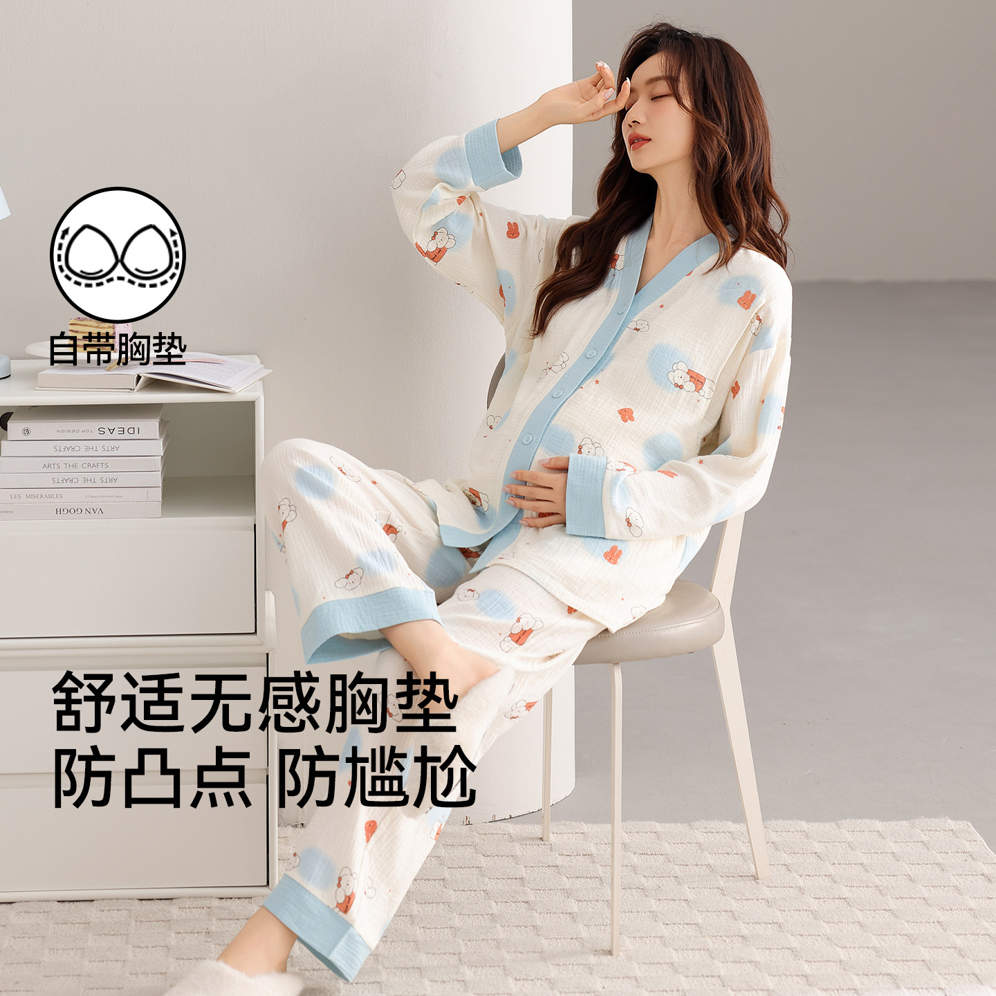 带胸垫奶香风纯棉月子服春秋季产后产妇孕妇睡衣秋冬款哺乳喂奶衣