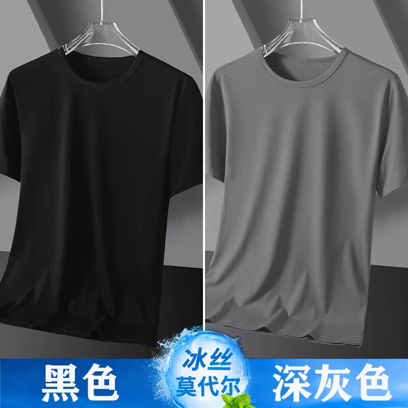 清仓莫代尔冰丝男士短袖T恤特价夏季打底衫上衣服汗衫潮黑色白色