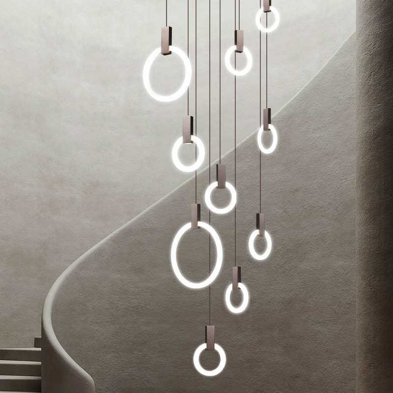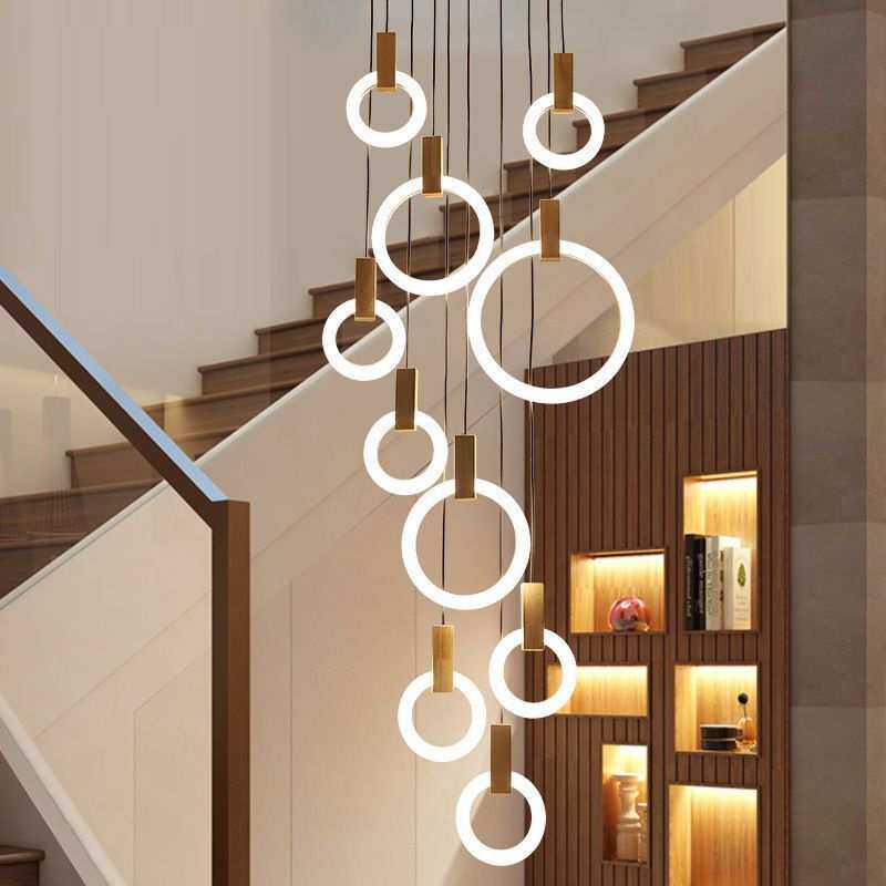 北欧轻奢简约水晶灯餐厅吧台客厅卧室别墅复式旋转楼梯挑空长吊灯