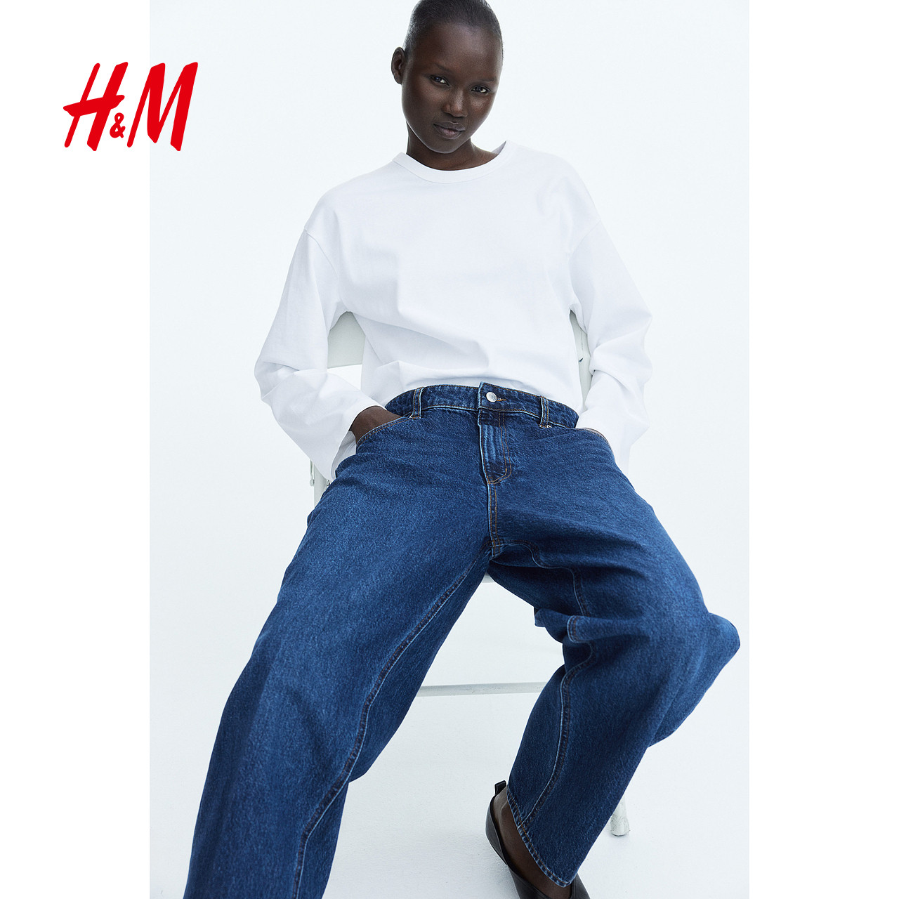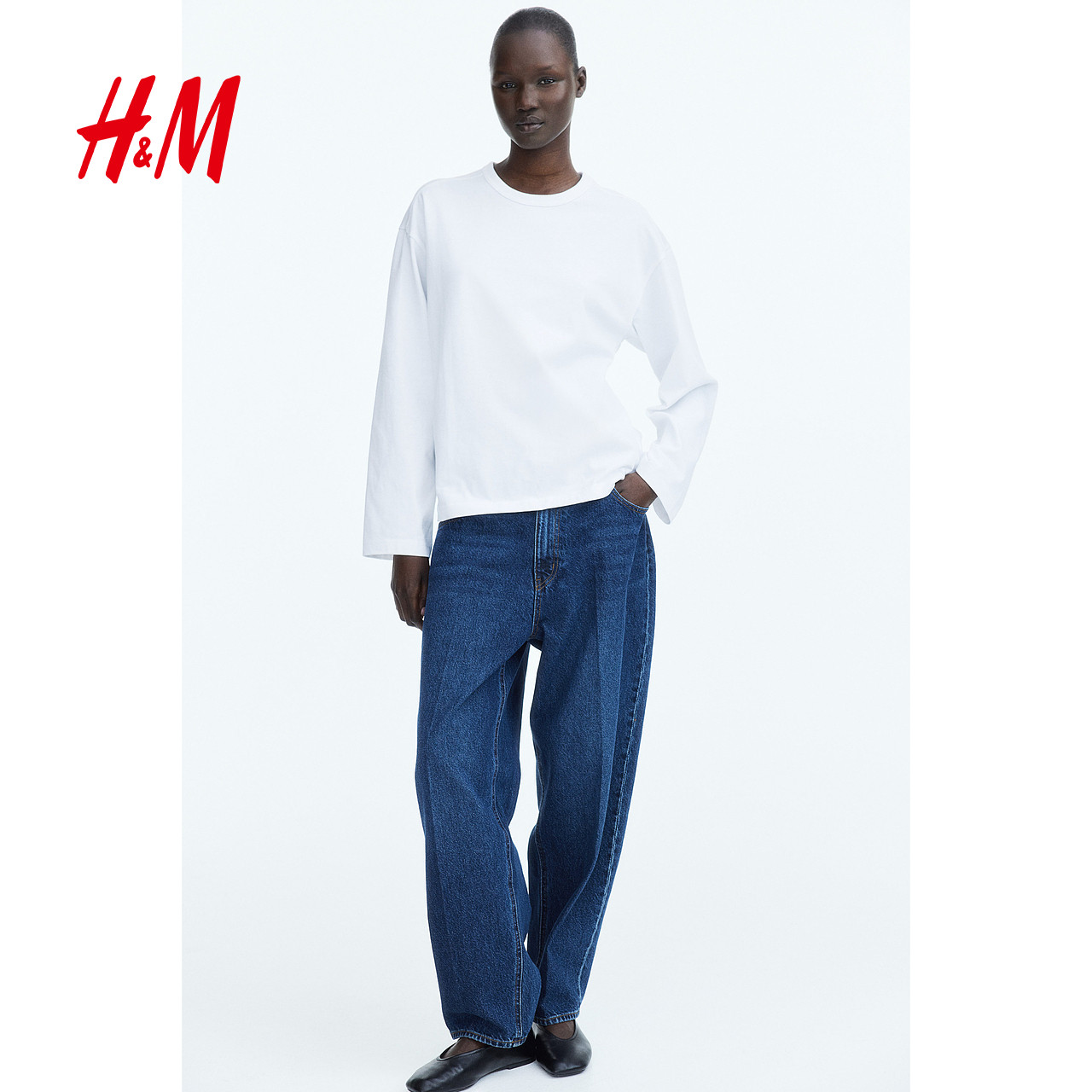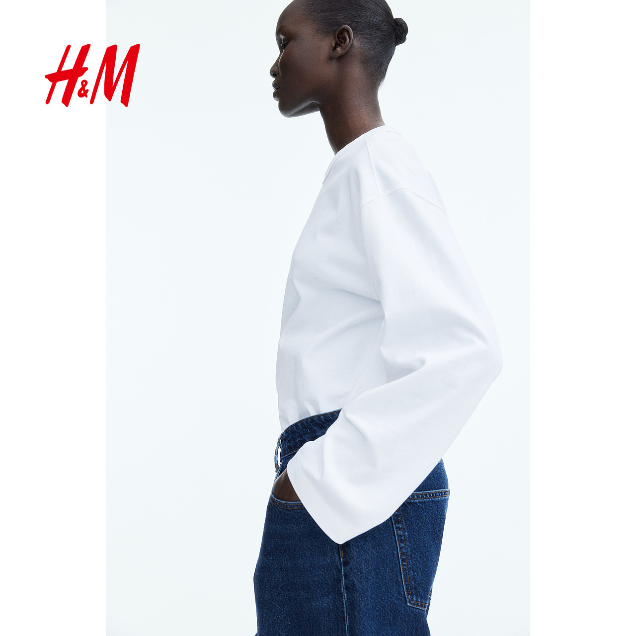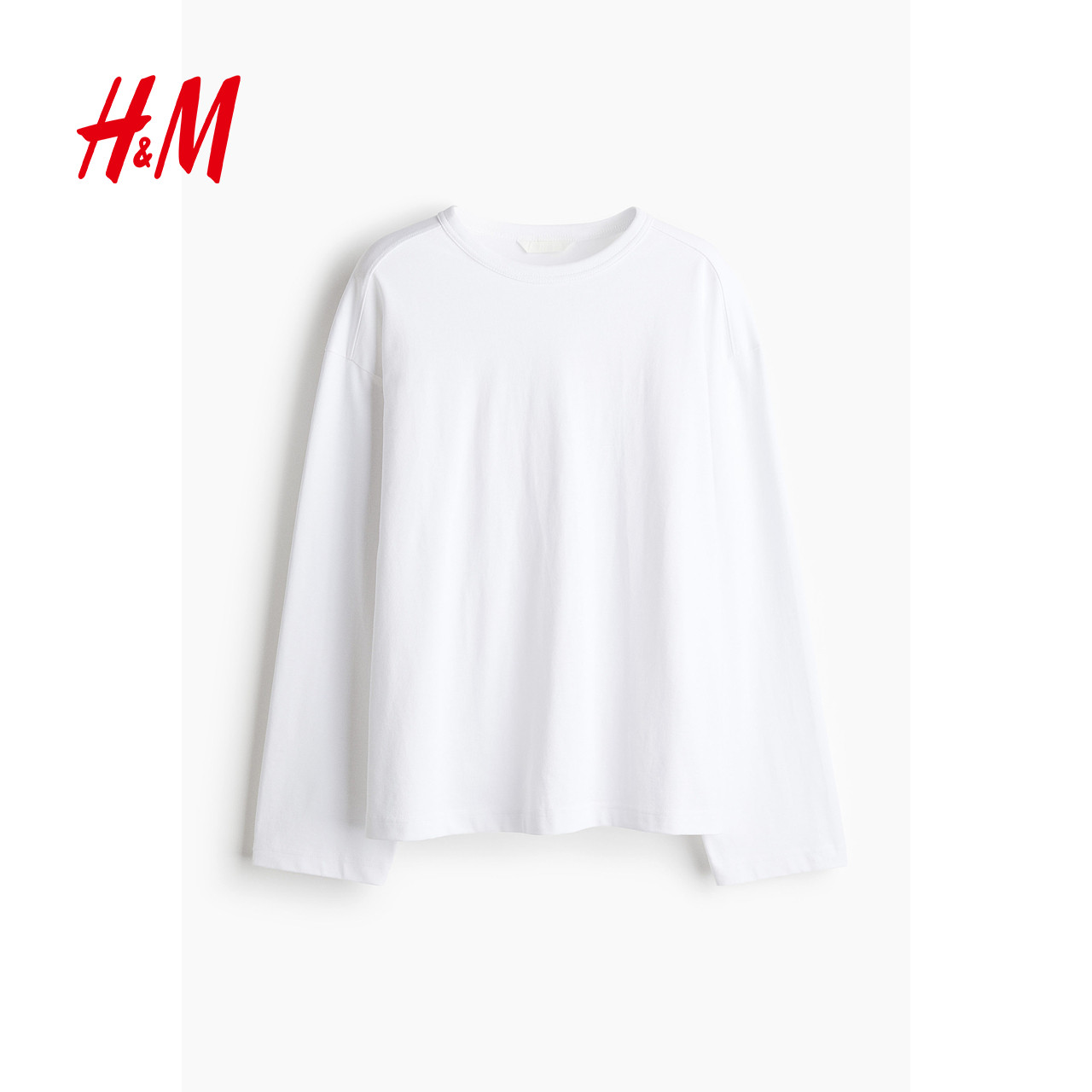 HM女装T恤2025冬季新款大廓形印花落肩棉质长袖上衣打底衫1243660
