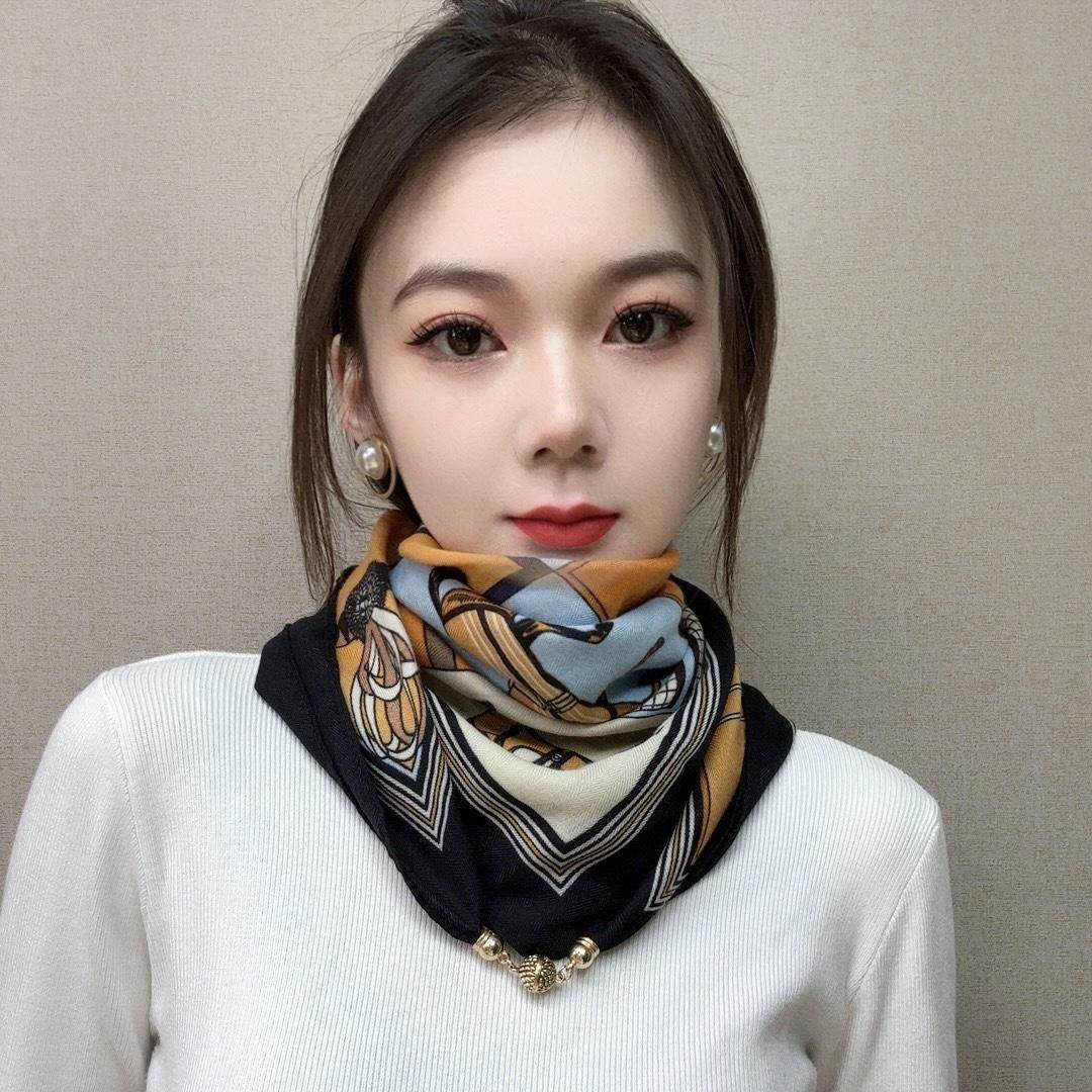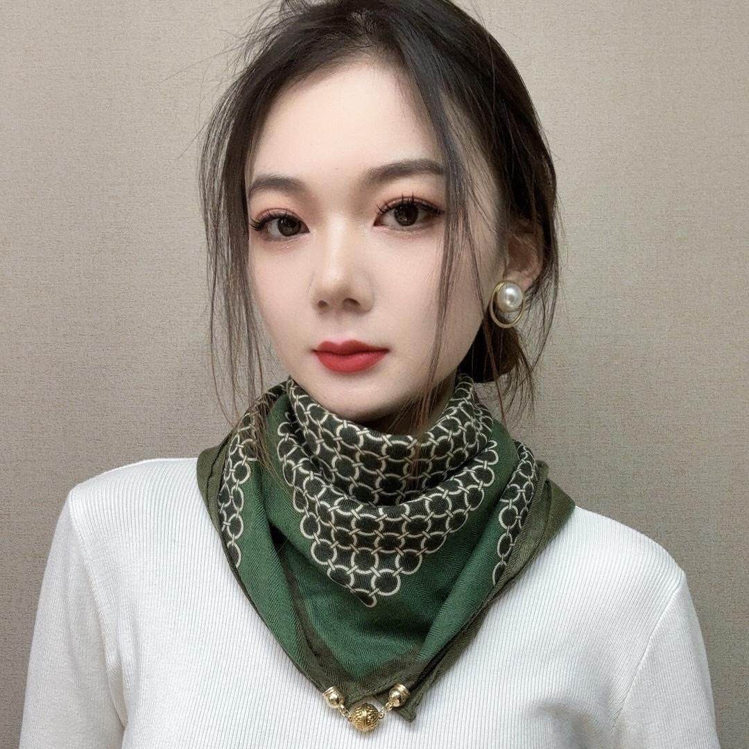 围巾女款2025新款春秋假领子百搭女假领磁扣三角巾大丝巾围脖护颈