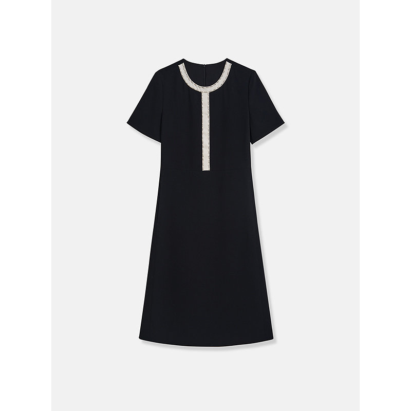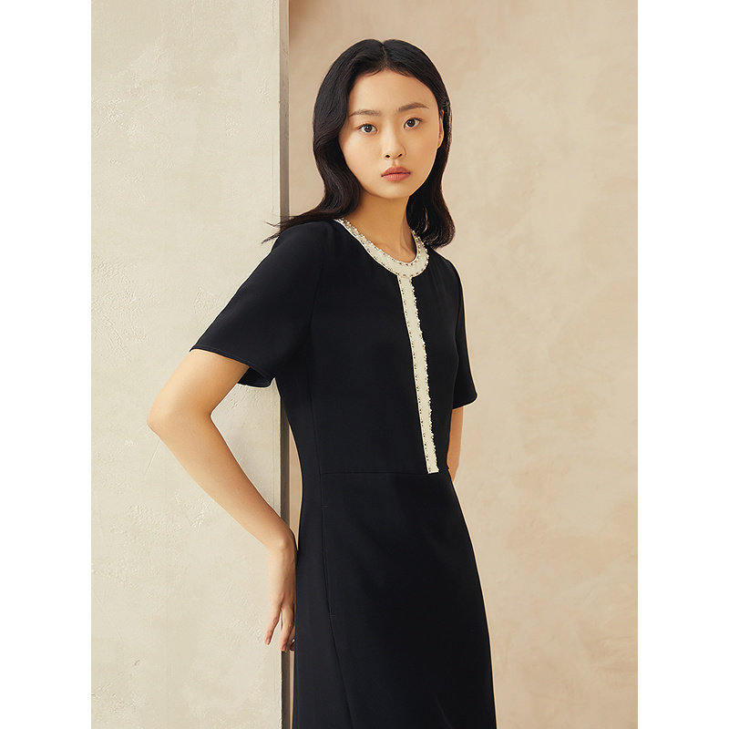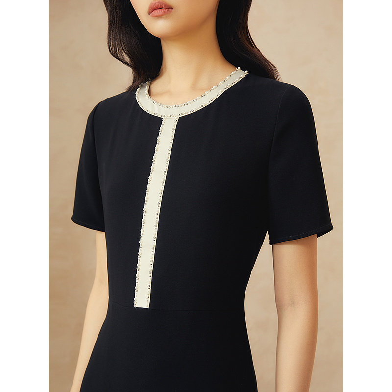 【雅致黑裙】YINER音儿专选2025夏季新款钉珠撞色醋酸小A字连衣裙