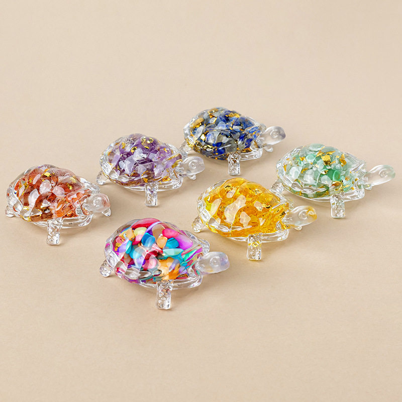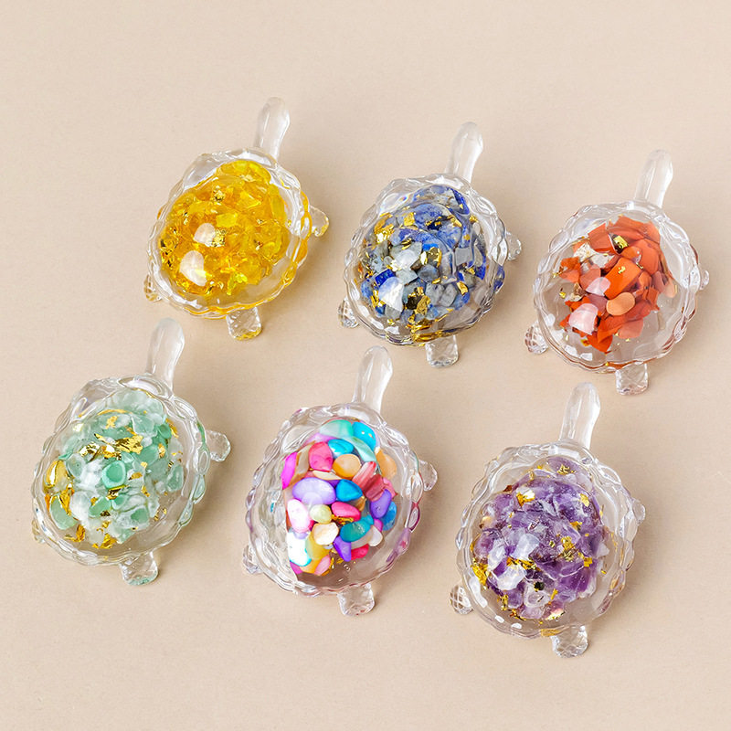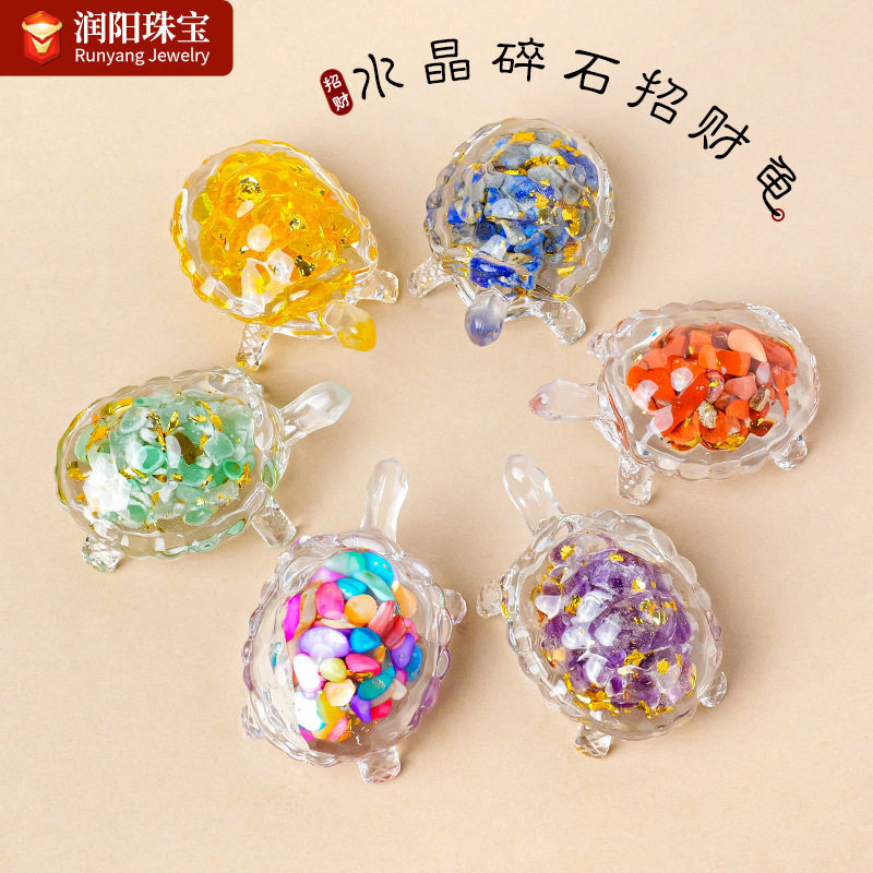 玻璃小乌龟天然水晶碎石乌龟摆件桌面招财装饰滴胶紫水晶青金石