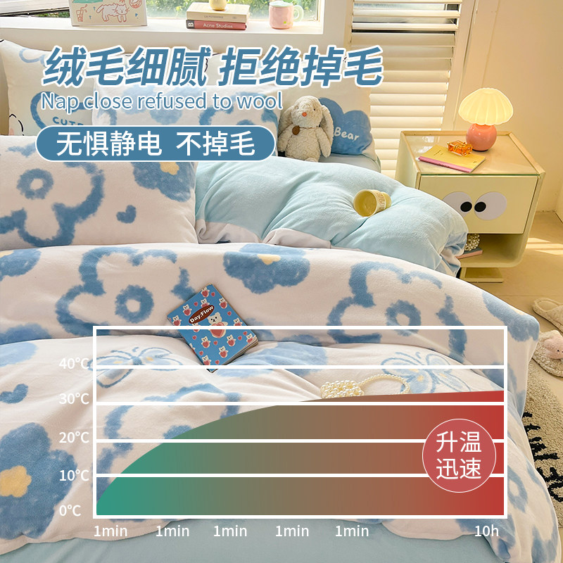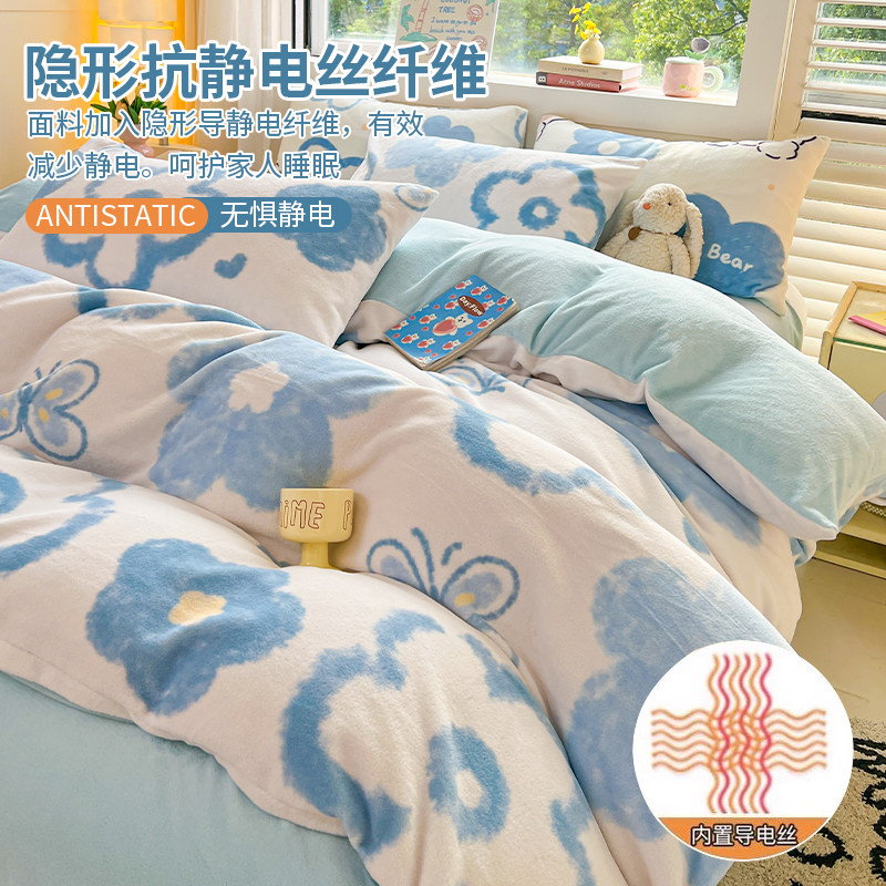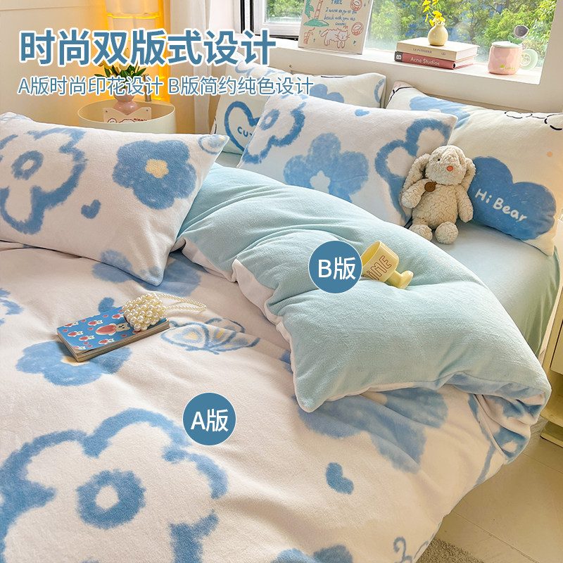 冬季加绒被套单件牛奶绒珊瑚绒宿舍单人单独毛绒被罩1.5米四件套3