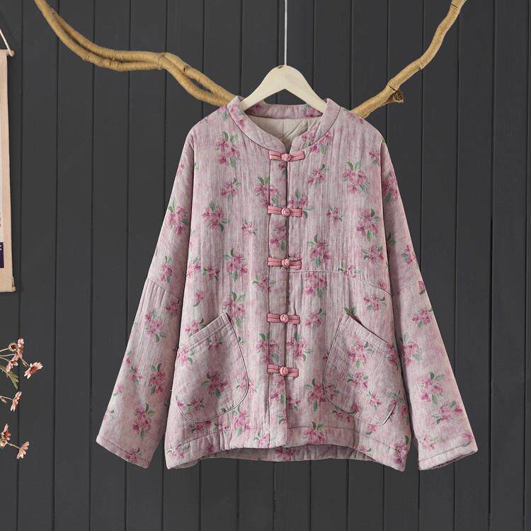 2025冬季加棉棉衣女士盘扣网红棉服外套中国风宽松长袖上衣大花袄