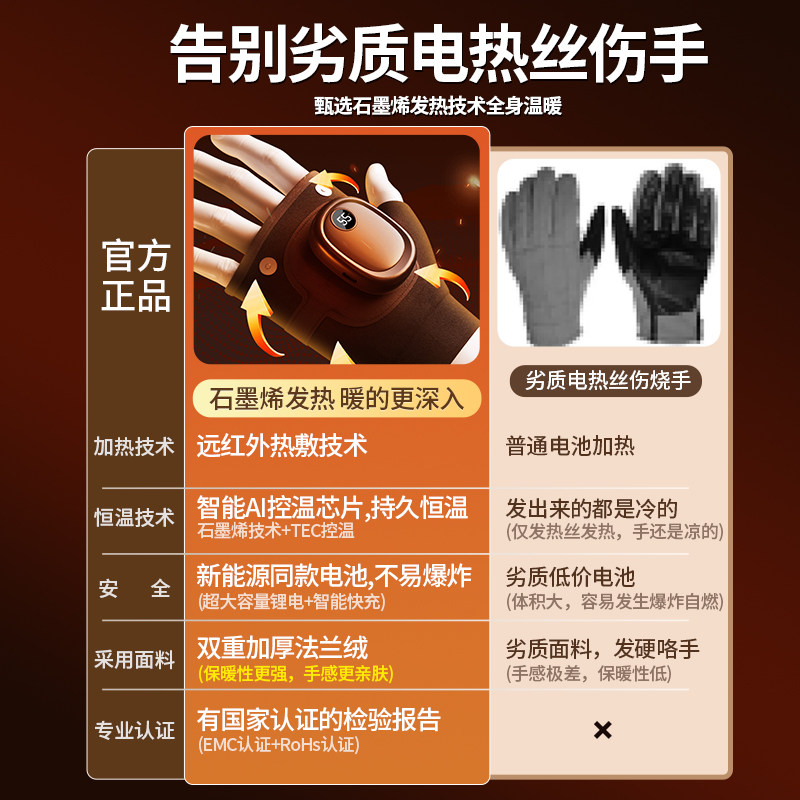 电加热手套电发热充电保暖手宝骑行男女士冬季天智能无线动摩托车