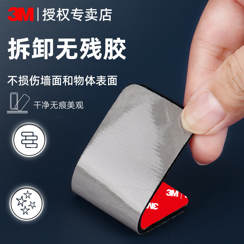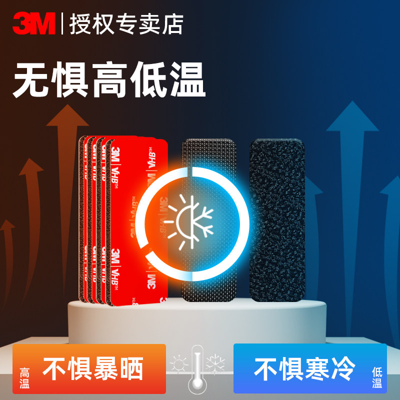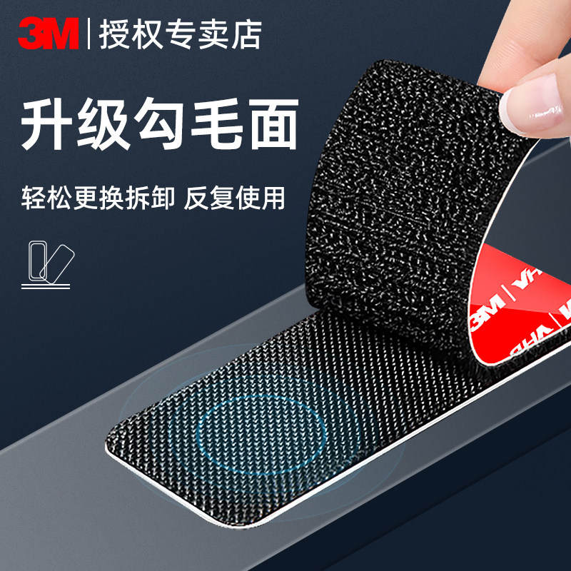 3M车用魔术贴背胶强力高粘度汽车脚垫后备箱垫防滑固定神器可拆卸无痕双面贴耐高温隐形卡扣贴条子母贴自粘
