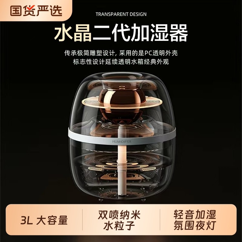 2025新款加湿器家用大雾量3L小型迷你静音卧室usb充电空气净化办公室桌面喷雾保湿器便携式专用床头大容量
