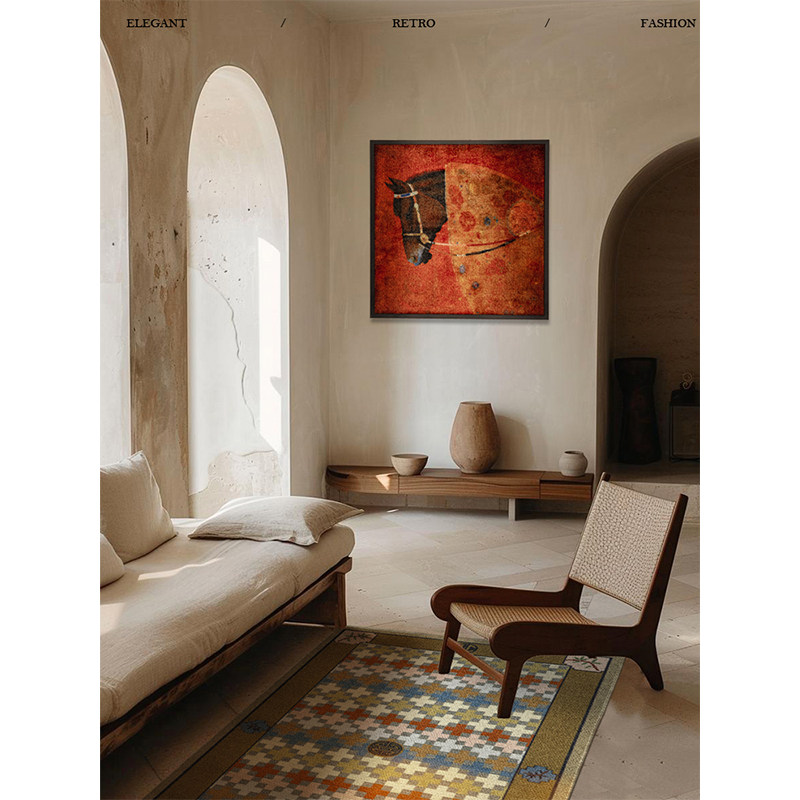 蜡笔派骏程万里挂画中古客厅玄关装饰画轻奢高端复古立体入户壁画