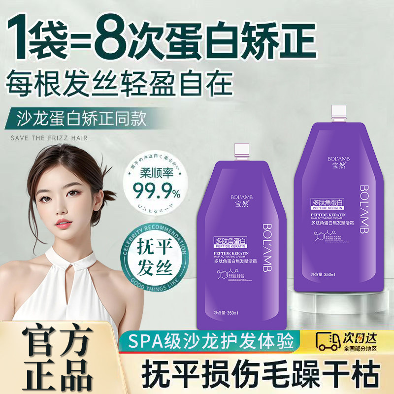 宝然多肽角蛋白发膜柔顺滑改善毛躁蛋白受损护发素女正品补水滋养
