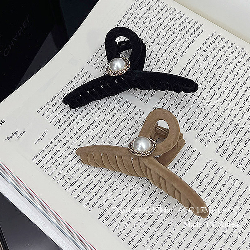 17mart韩国发饰复古黑色丝绒珍珠抓夹优雅后脑勺发抓简约盘发卡子