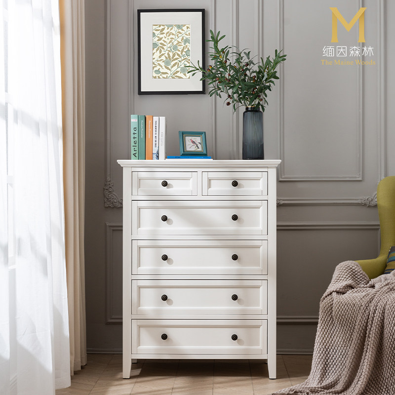 纯实木六斗柜储物柜美式抽屉柜客厅纯实木卧室简约白蜡木五斗柜