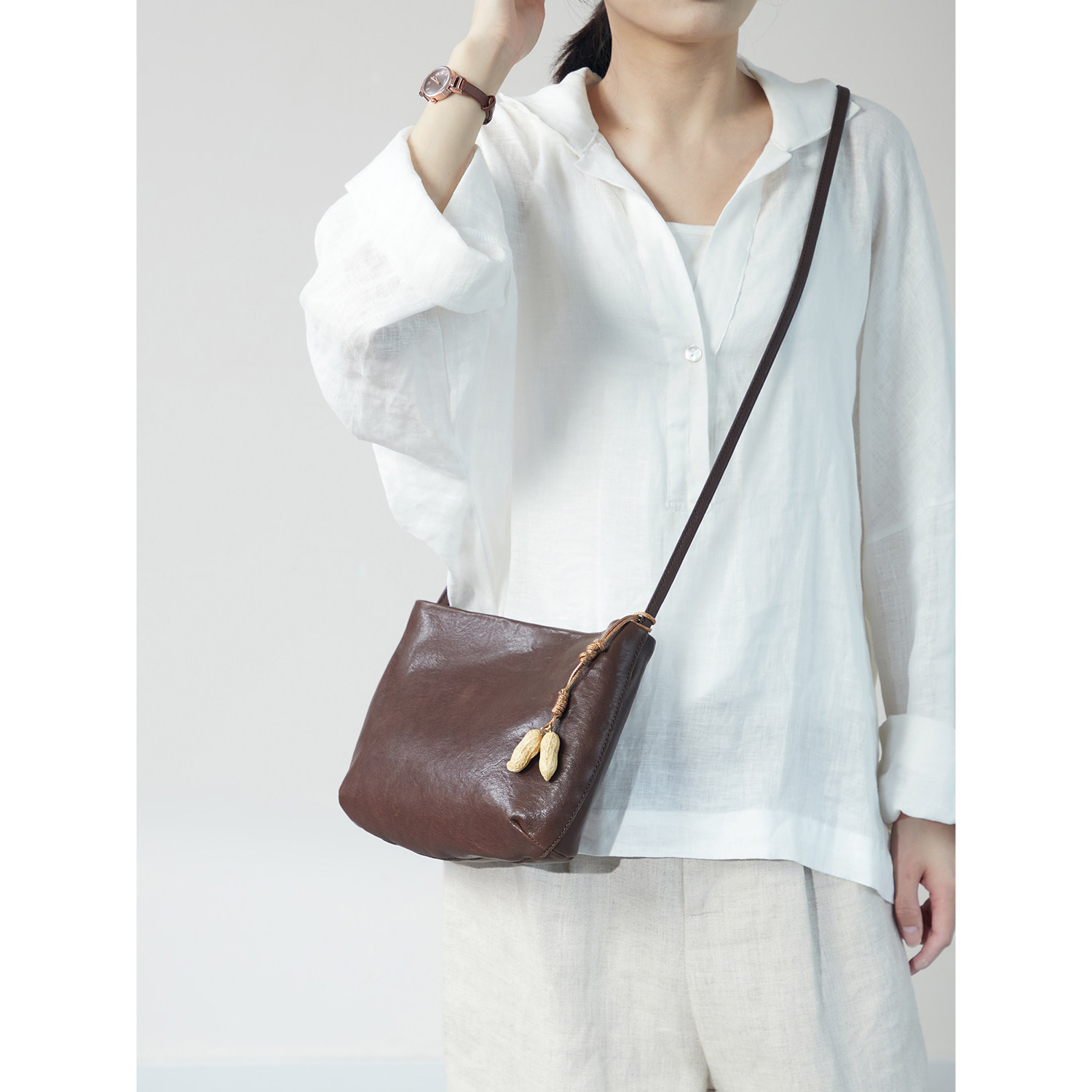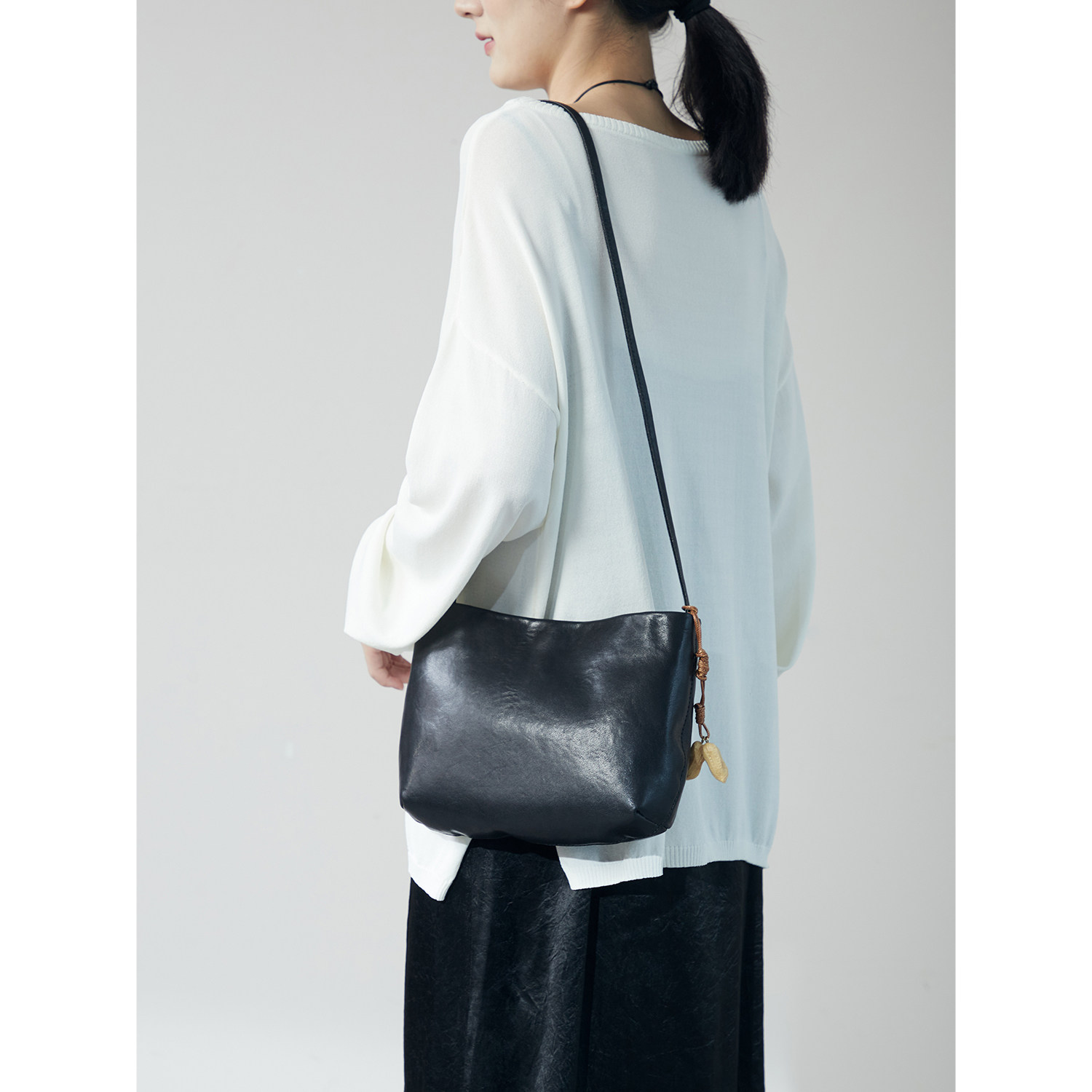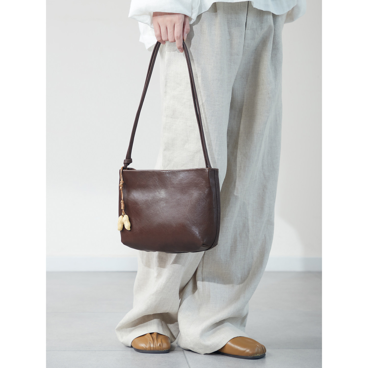 伊米妮头层植鞣牛皮简约大容量2025新款高级百搭休闲通勤单肩包