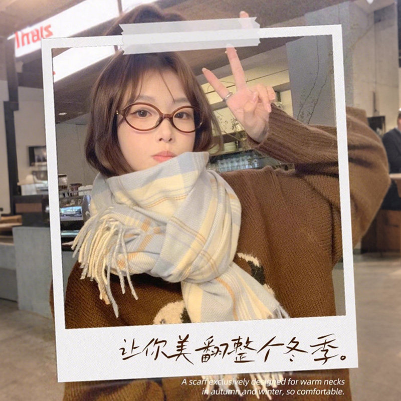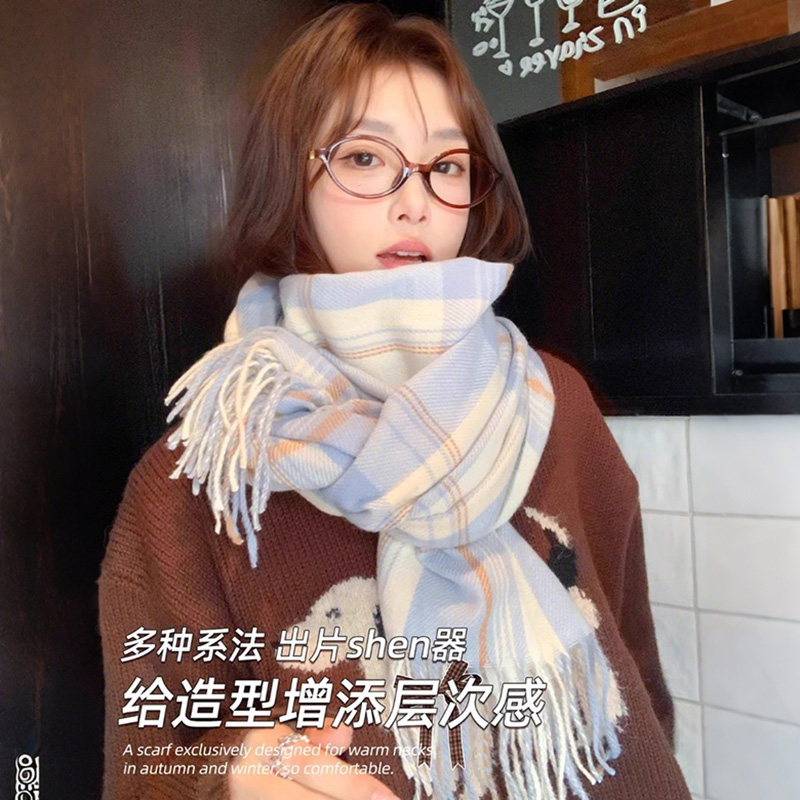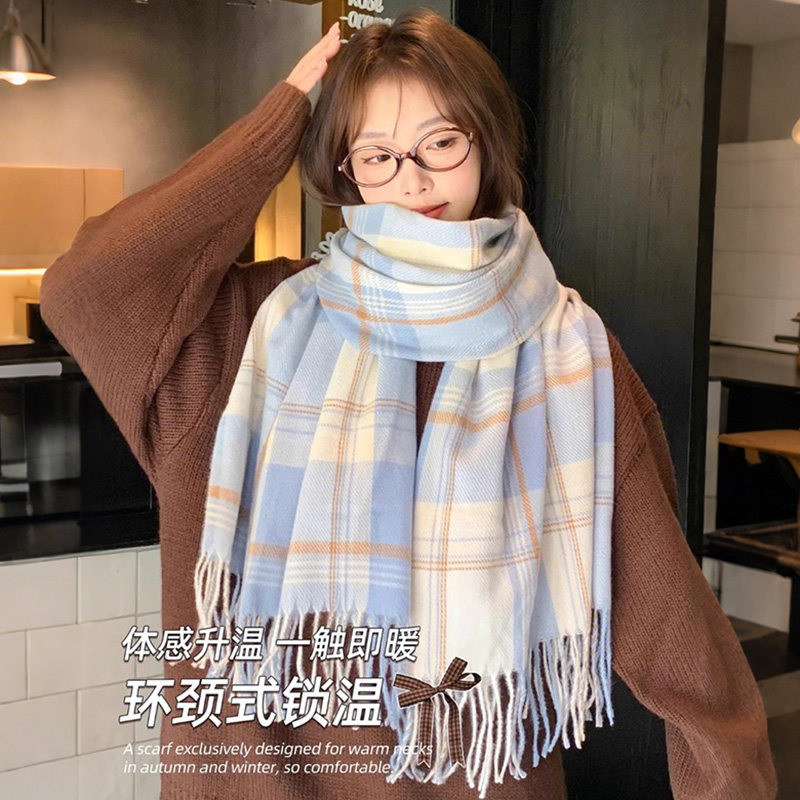 围巾冬季女高级感蓝色格子披肩2025新款百搭韩系氛围感学生围脖