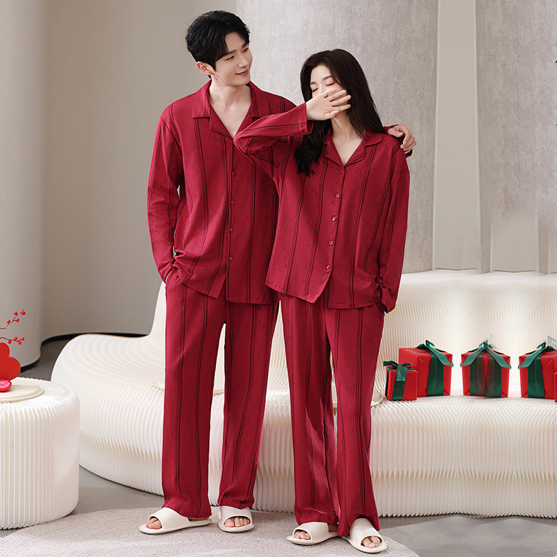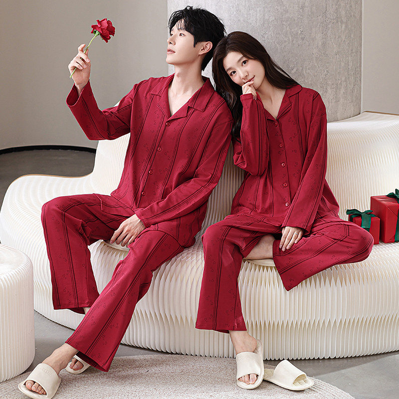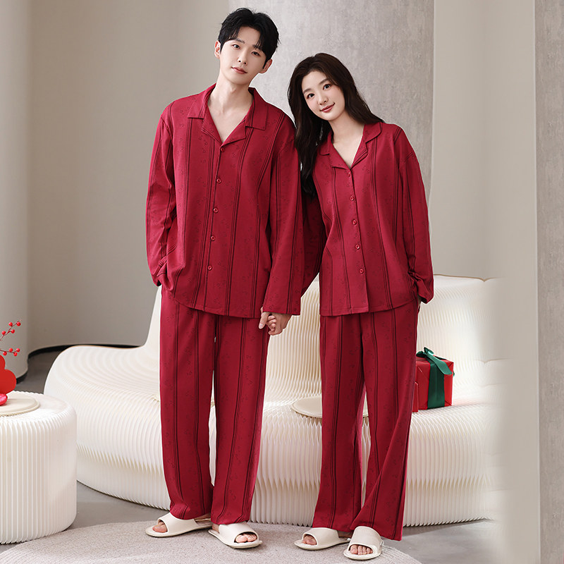 都市丽人纯棉睡衣结婚新婚情侣套装25新款春秋男女长袖红色家居服